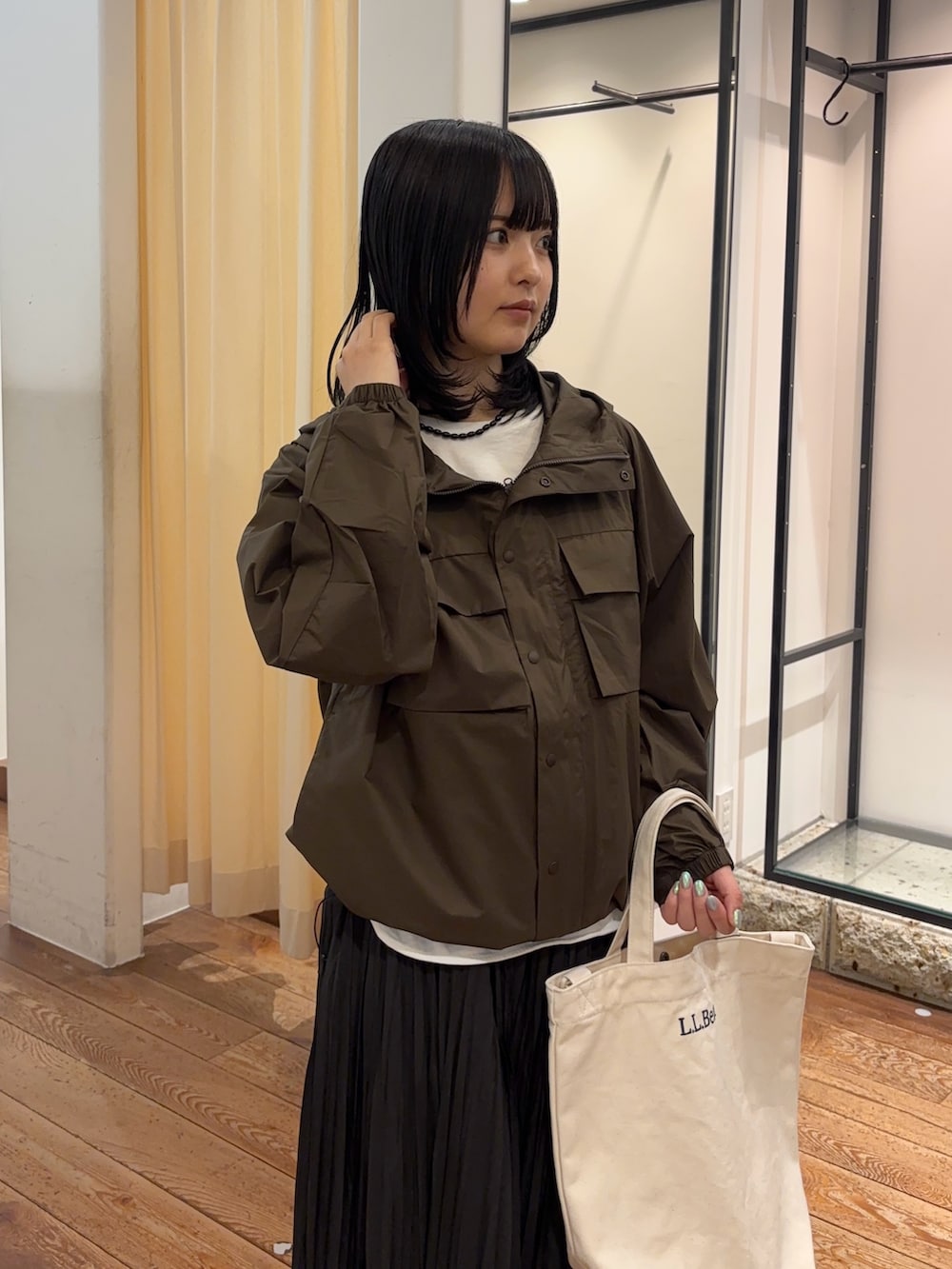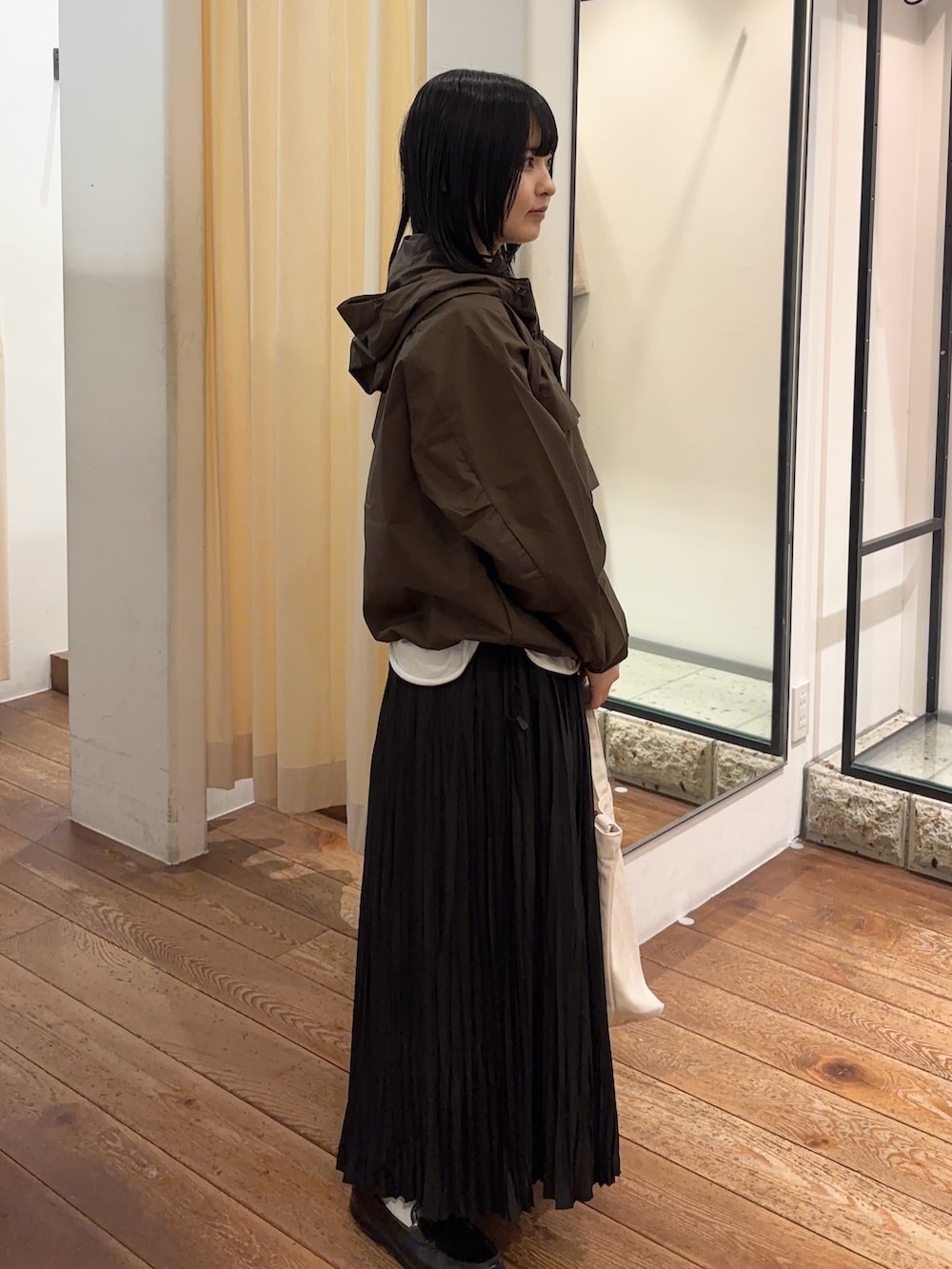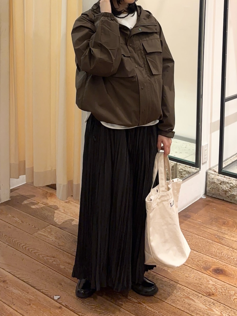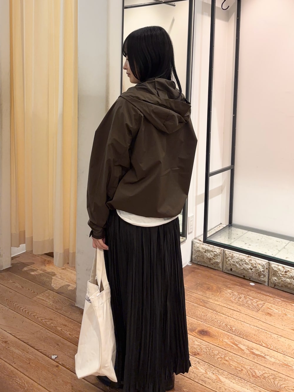 完全別注モデルで、素材も薄手なので、これからの温かくなる時期にぴったりです☆ドローコードが裾についているので絞ったシルエットにも変えていただけます!今回のようにきれい目に合わせても可愛いです🩷