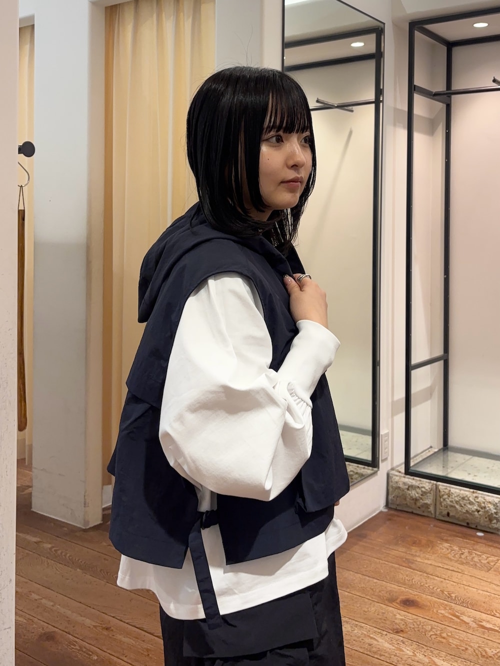 オーバーシルエットですが程よい丈感ですっきりしており、ボトムに合わせやすいサイズ感になっています◎前の切替にポケットがあり、ポケット下にさり気なくロゴ刺繍を施しているのがポイントです♬
