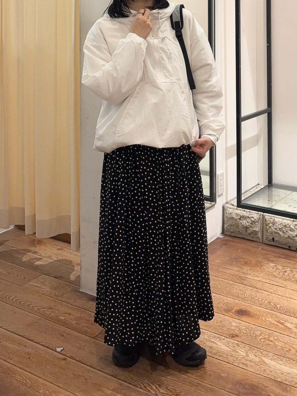 シアー素材なので、ボーダーなど柄物をレイヤードするのもおすすめです✨スポーツミックス風なコーデから、今回のように甘めのスカートと合わせるのも可愛いです◎ドローコードが裾についているので、ボトムスとのバランスを見てシルエットを変えていただけます!