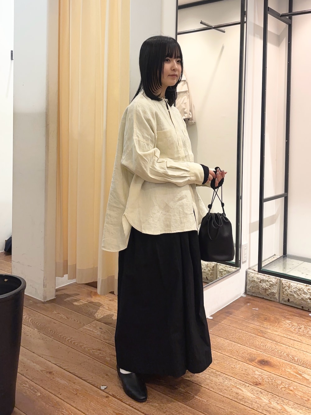 かぐれのスカートは、ウエストがゴムで履き心地がとても良いです!ボリューム感があるシルエットなので女性らしい上品さを演出してくれます◎遠州染の素材感が普通のスカートより1枚で様になります♩