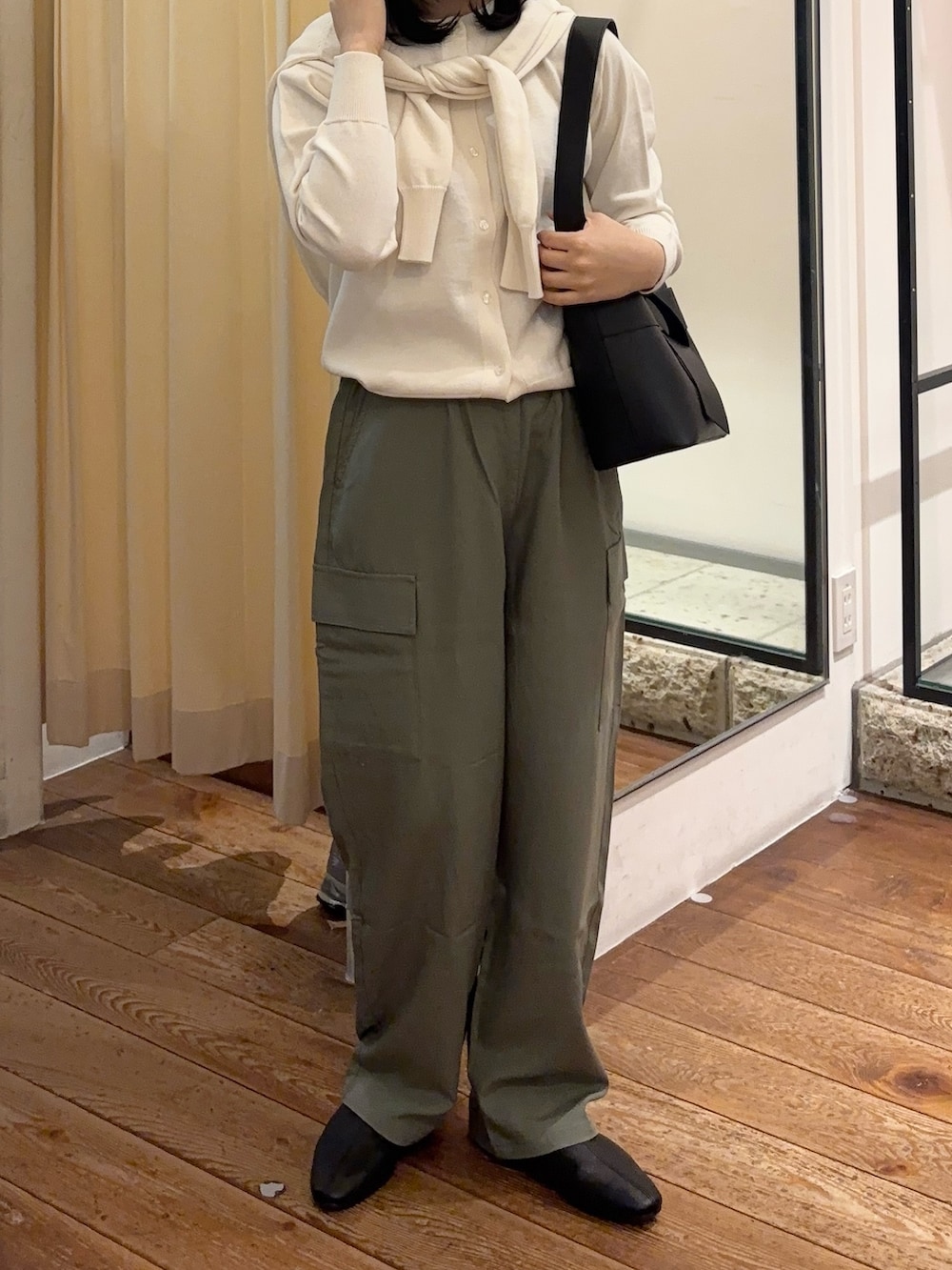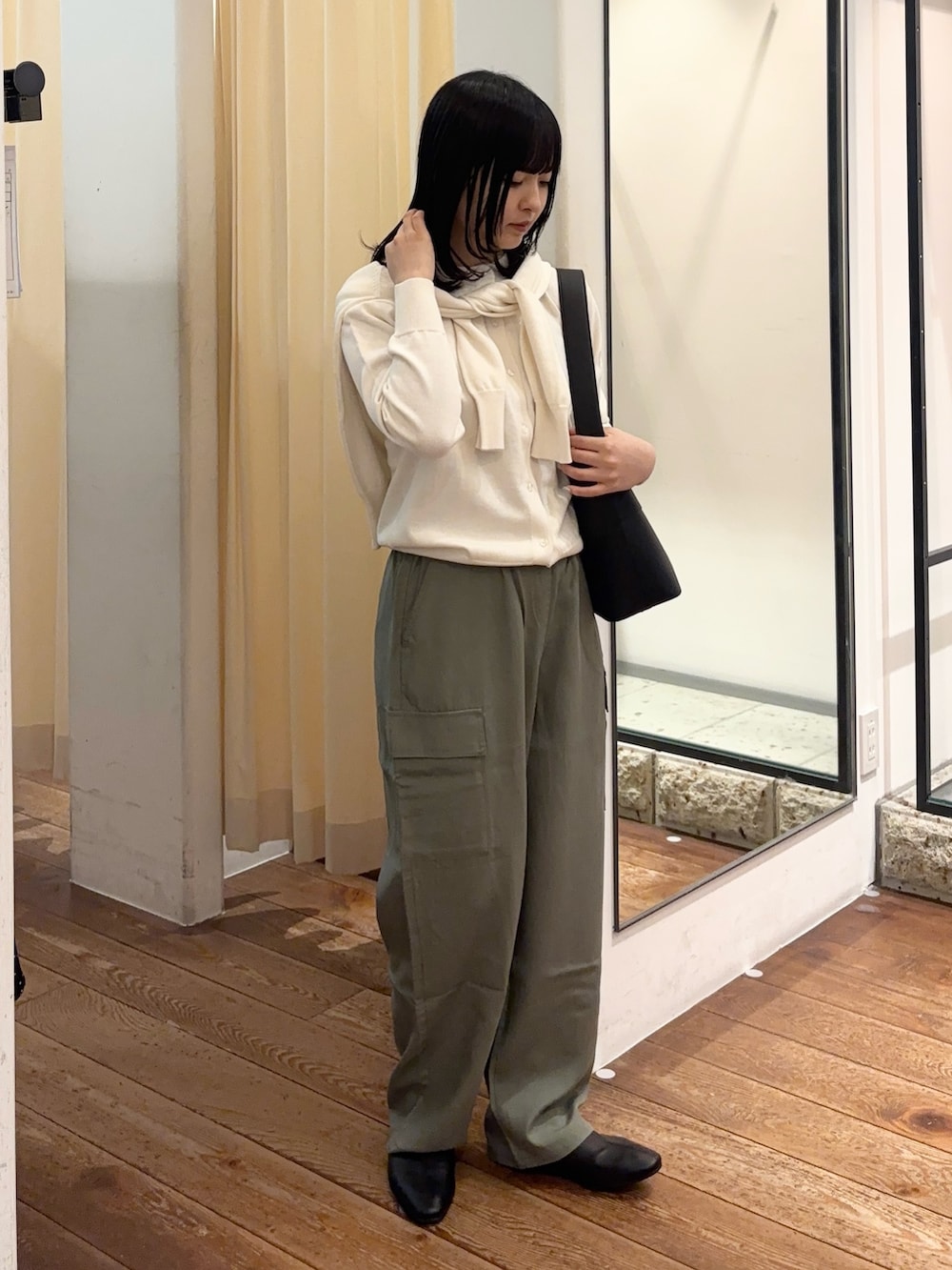 毎年大人気のオーガニックコットンのニットとカーディガンのシリーズを重ねて着でみました!肌触りもとても良くて、厚みがそこまでないのですっきりとしたスタイルに見せてくれます✨色味も春らしくてコーデが華やかになります◎