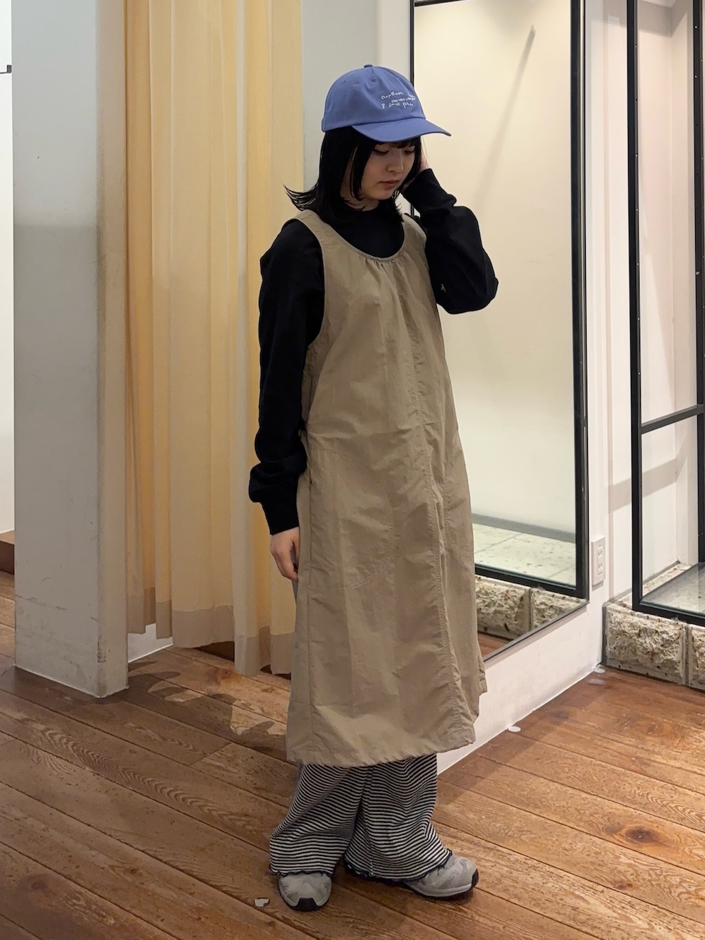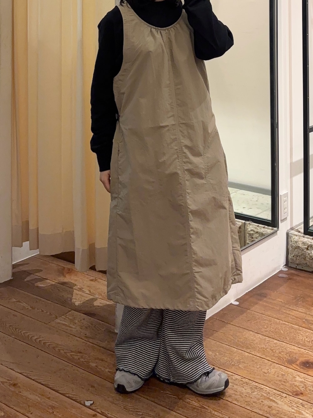 ウエストはサイドのドロストで絞ることができるので、スタイルアップして着こなしていただけます🙆🏻丈は短めのデザインなので今回のようにパンツをレイヤードするのがおすすめです♬