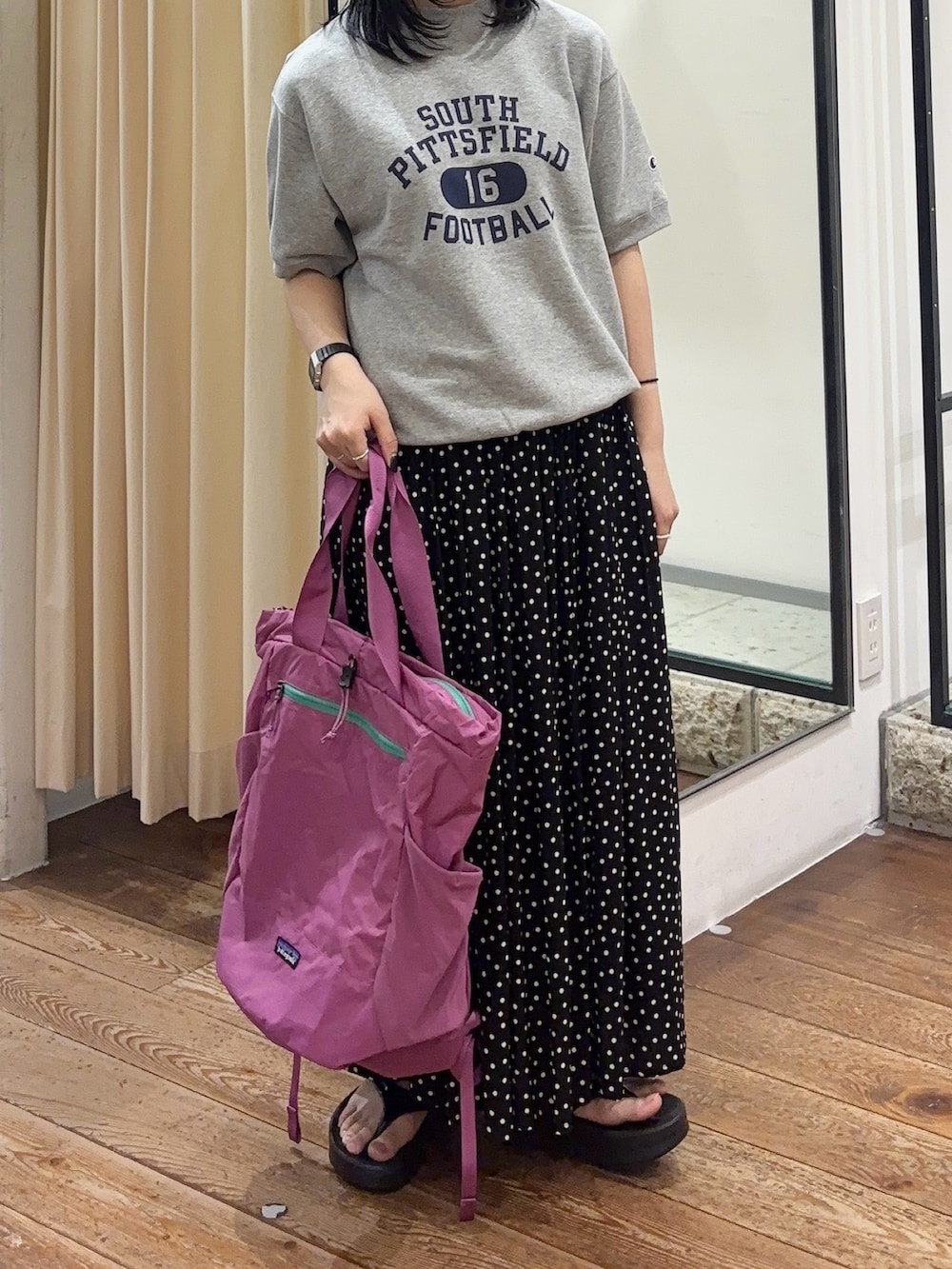 championとコラボの別注アイテムになります!程よく身幅にゆとりがあるので、着心地もとても良いです🙆🏻丈がすっきりしているので、スカートなどボリュームのあるボトムスと相性が良いです✨