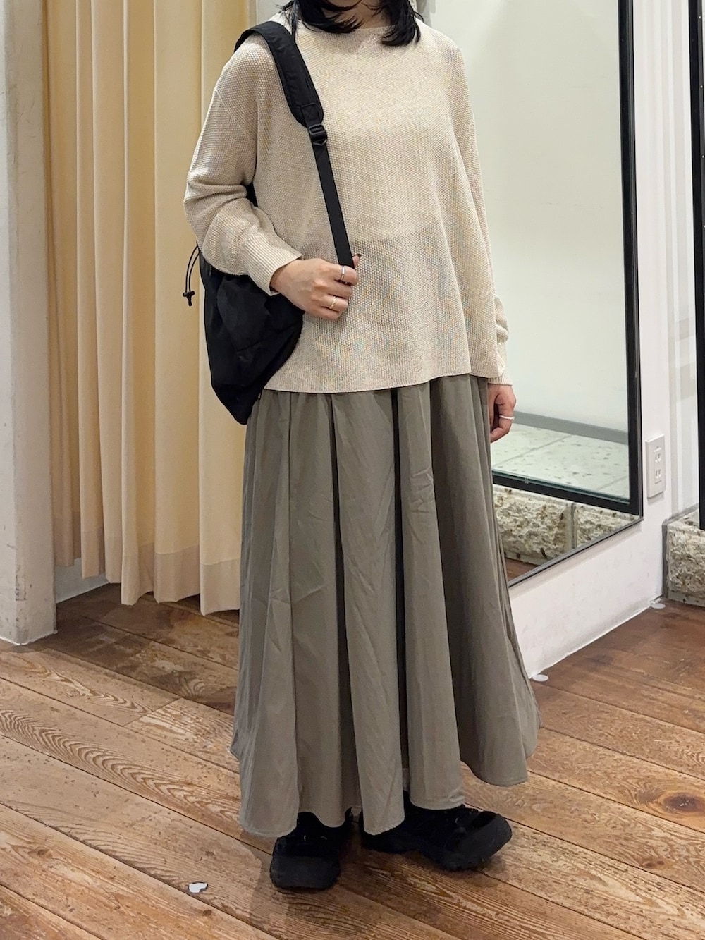 ラメがあるのが可愛くて、インナー次第で真夏まで着用していただけます!サイドにスリットが入っているので、程よく抜け感もあり、涼しげな雰囲気です◎