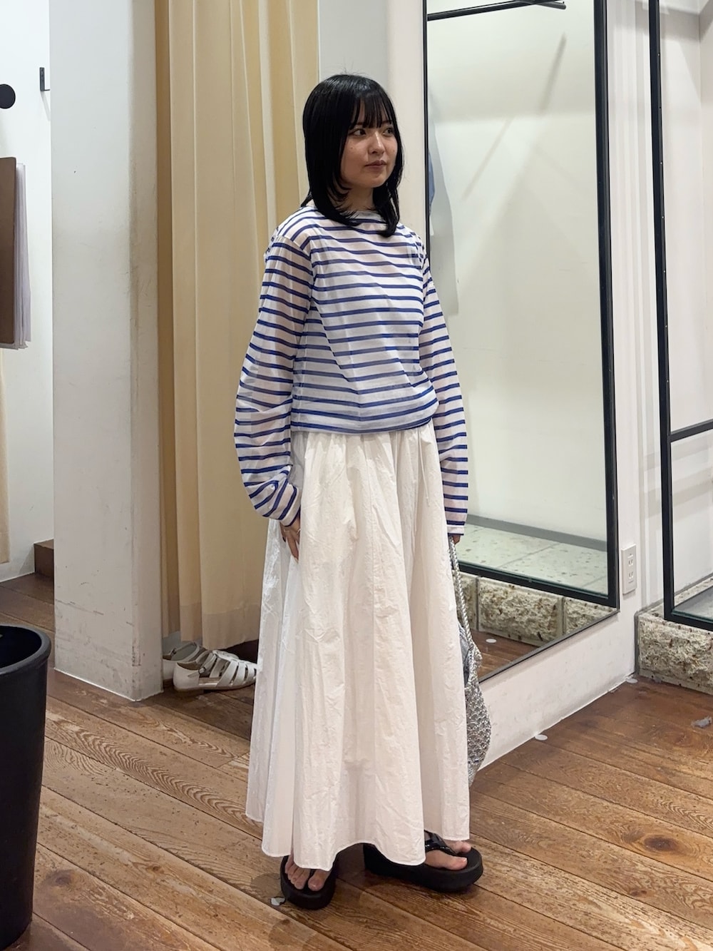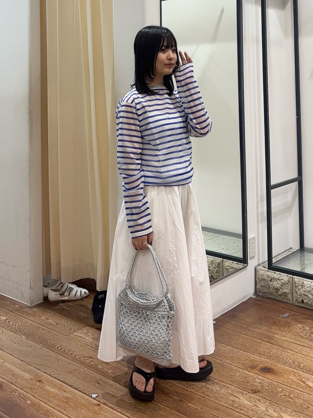 orcivalの新作のトップスです!昨年とはカラー違いで入荷しております✨透け感が可愛くて、サロペットなどのインナーとしても重宝します!真夏でも着用可能です◎