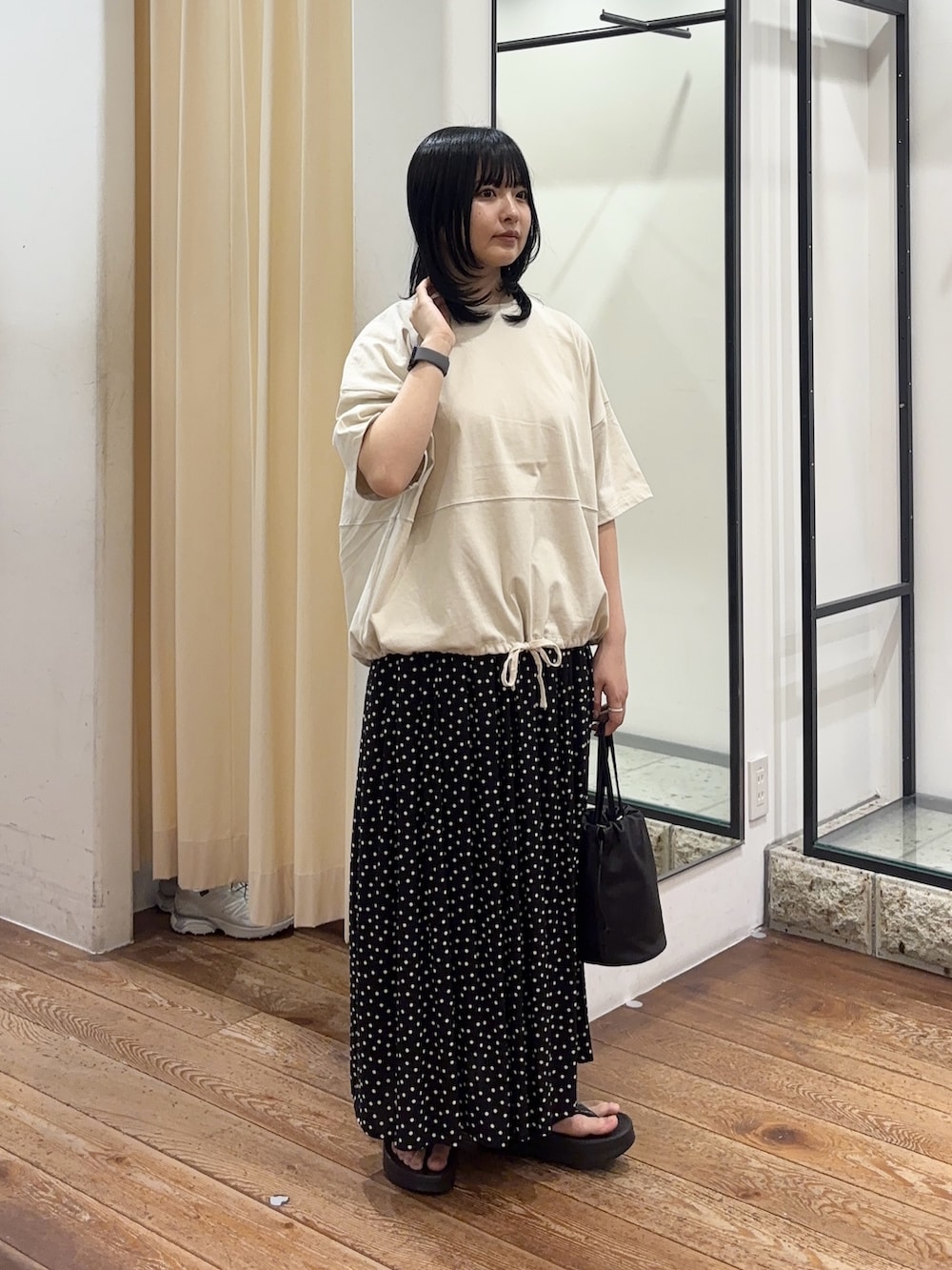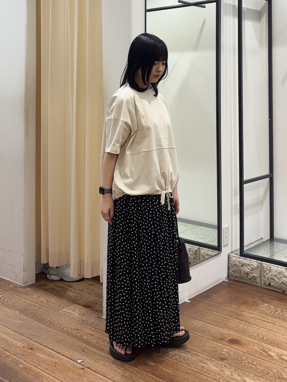ウエストはゴムで履き心地もとても良くて、ドットが大きすぎず、小ぶりなので甘すぎず上品に着こなせます!シンプルなトップスに合わせるだけでコーデが決まります☘️