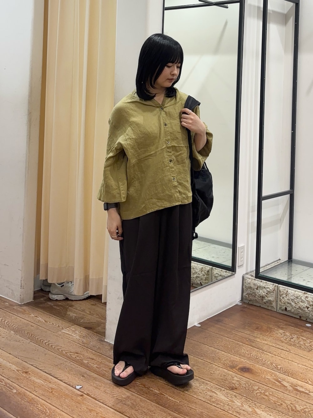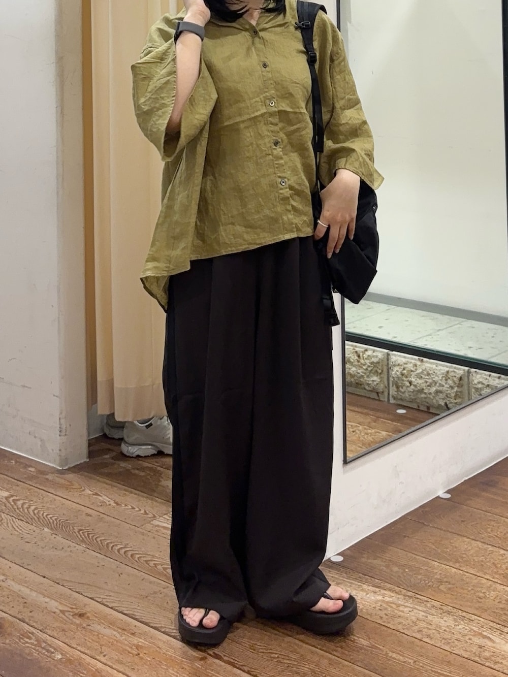 生地感も薄手なので、真夏でも涼しく履いていただけます🌿サイドのラインがワンポイントで可愛いです!綺麗めにもカジュアルにも合わせていただけます◎