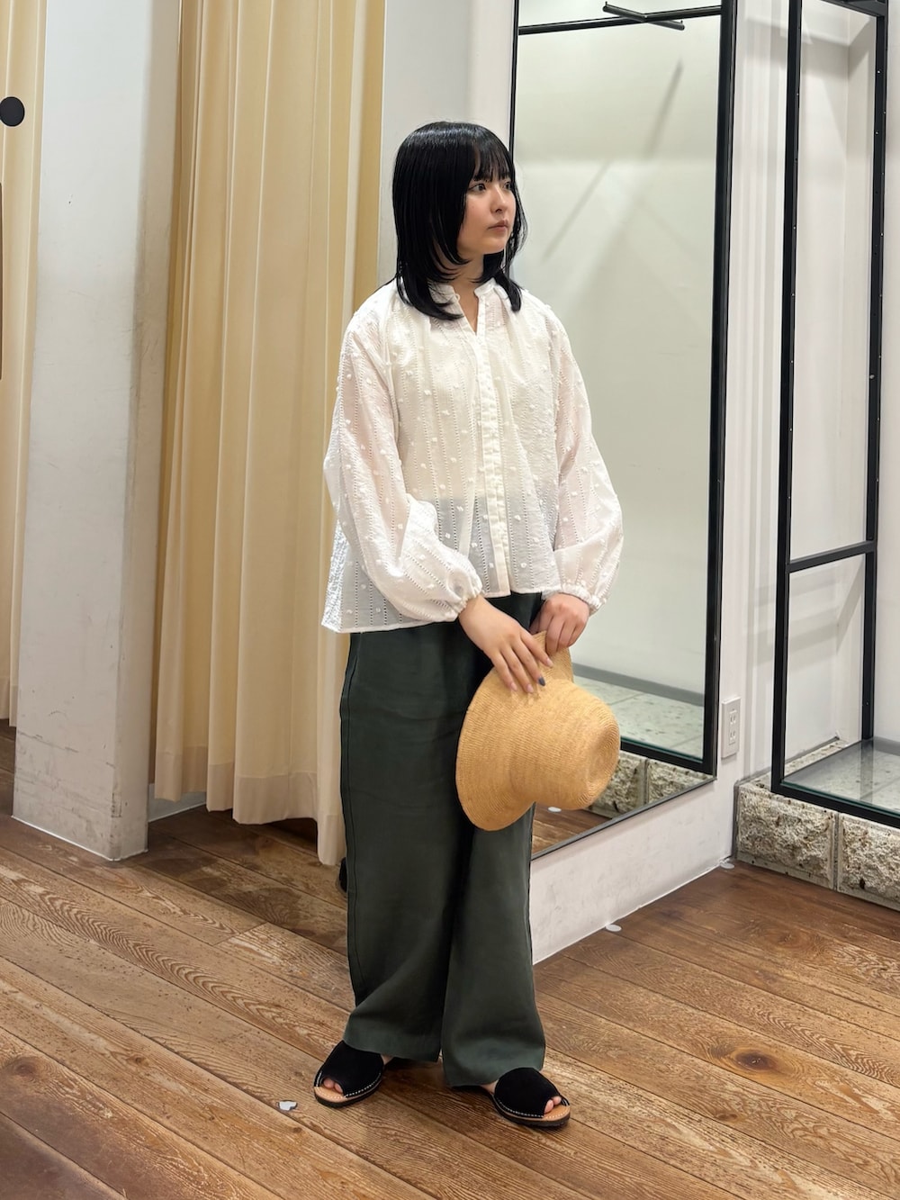 立体的な刺繍が可愛くて、1枚で上品に着こなしていただけます!フロントがボタンになっているので夏頃の軽い羽織としても重宝します🙆🏻袖先がゴムになっているので腕まくりしたスタイルも綺麗です✨