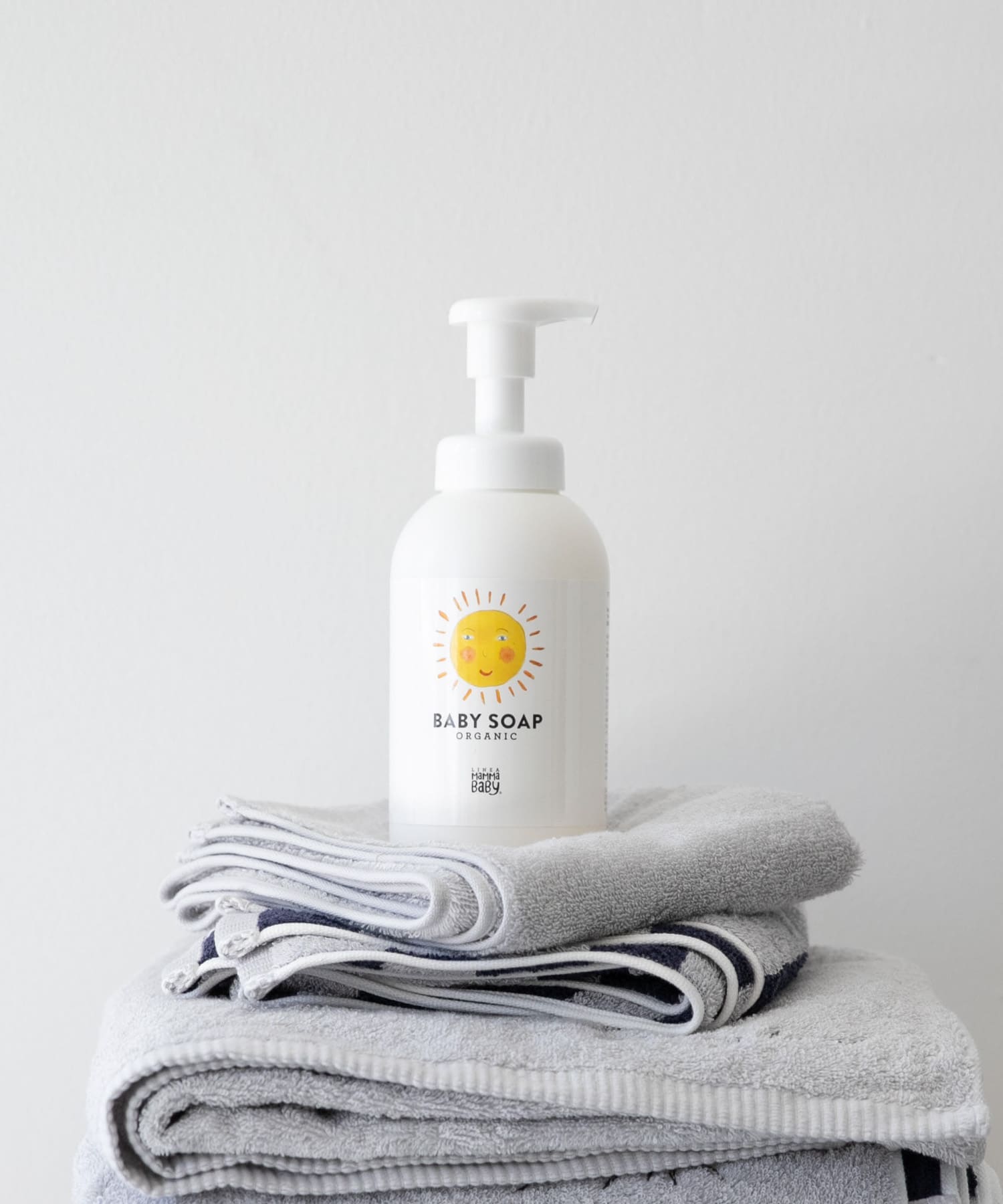 泡タイプの全身ベビーソープは、髪も身体も洗えるのに、乾燥を防ぎしっとりと柔らかな肌に。