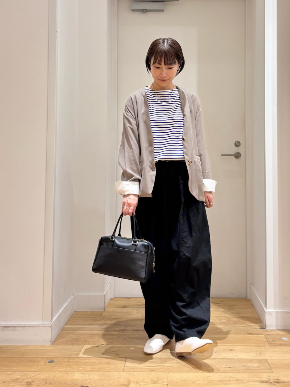 落ち感のある素材なのでスッキリと上品な印象に◎