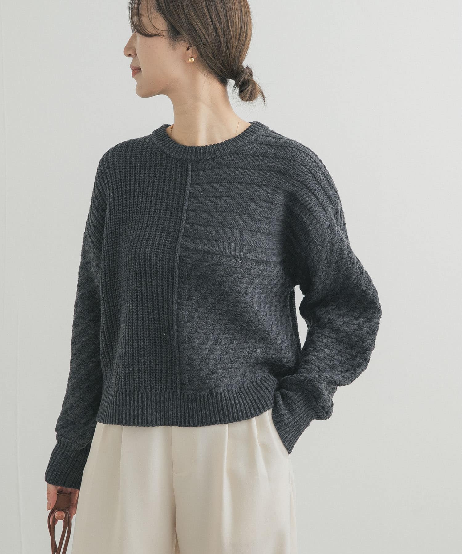 DOORSパッチワーク柄袖ボリュームニット- 着用カラー: