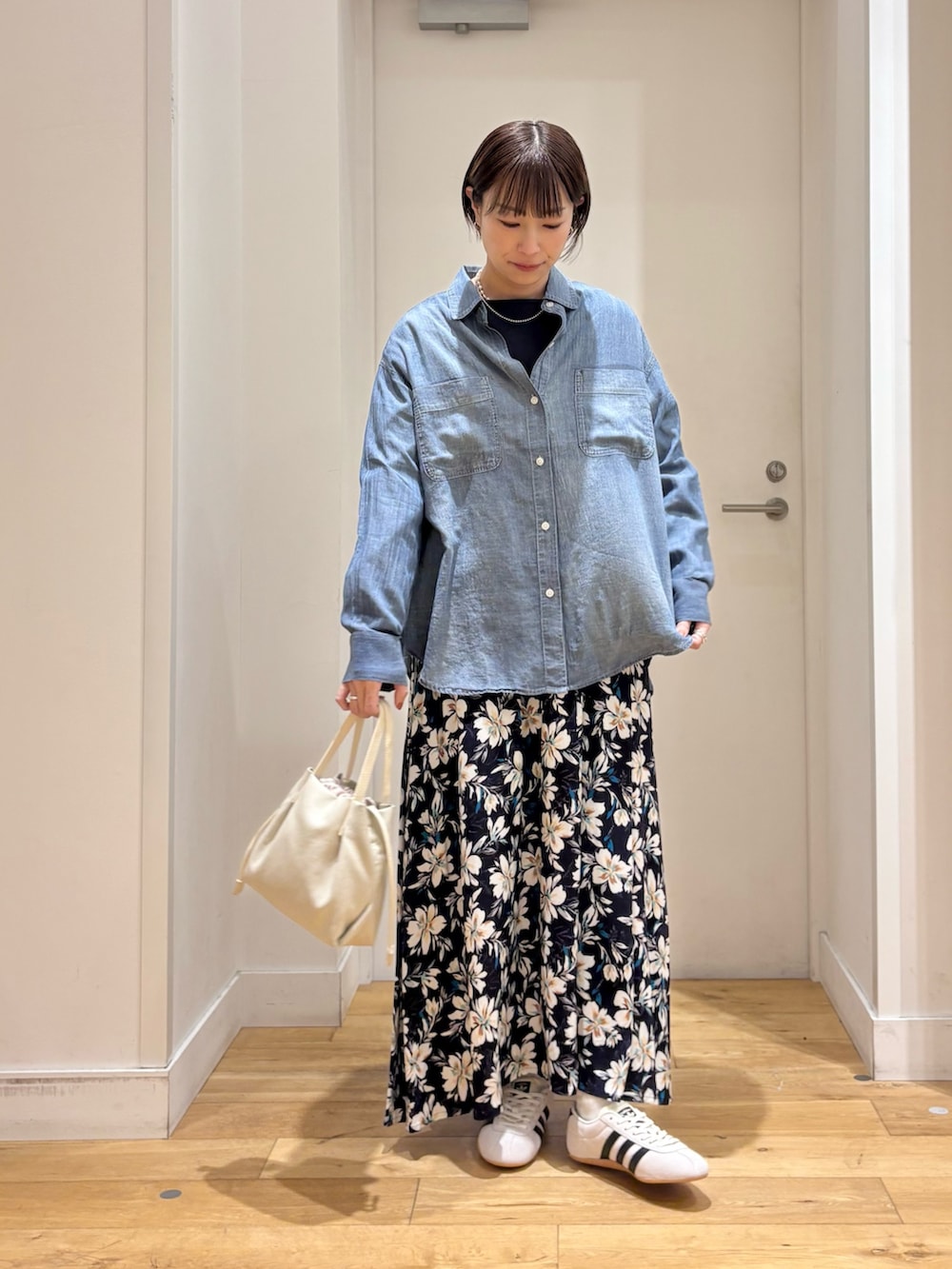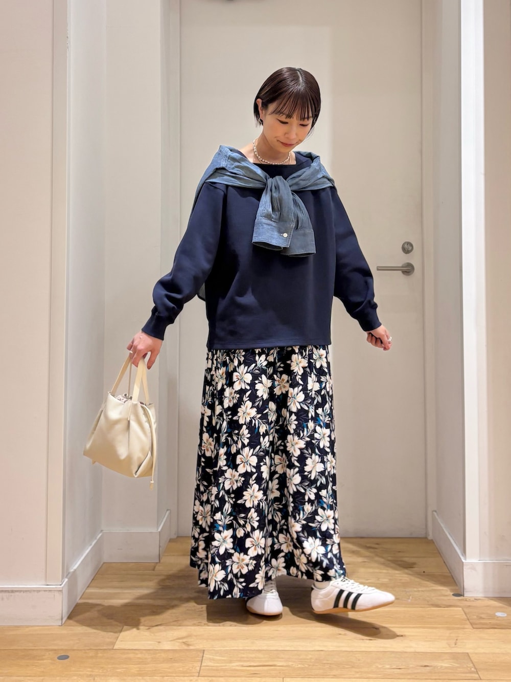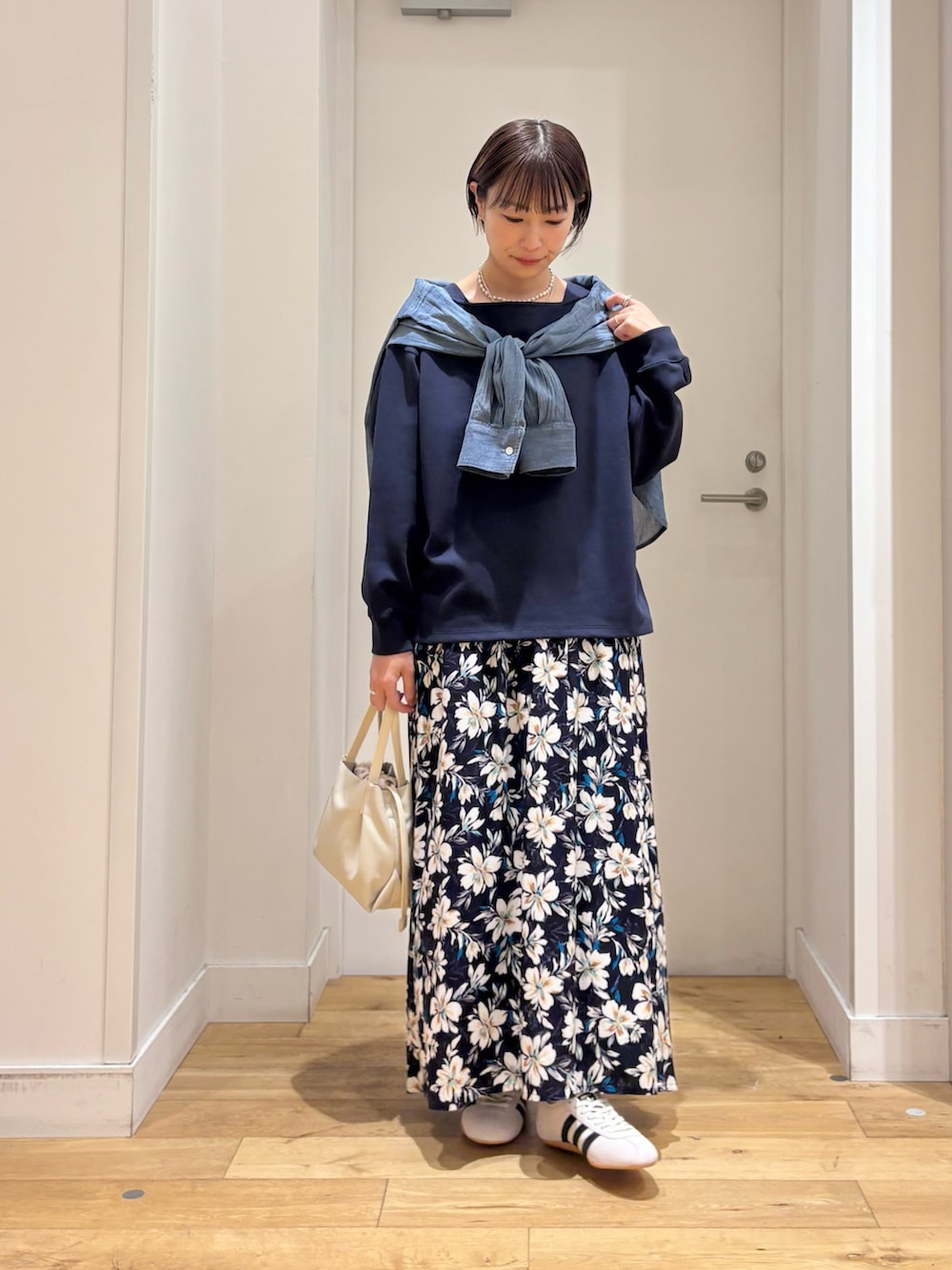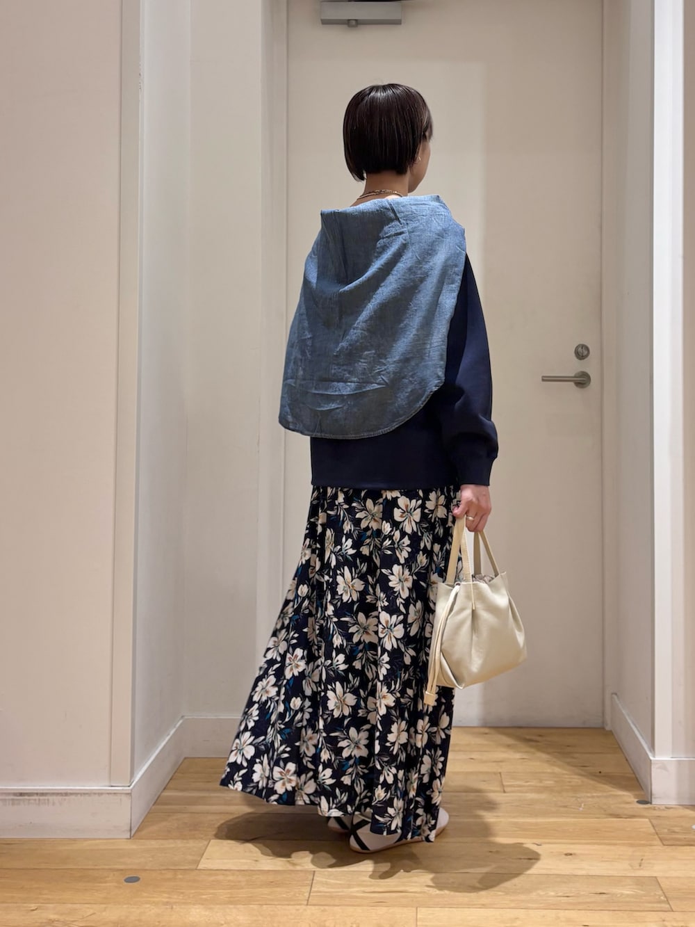 少し厚手のアイテムの上にも重ねて着られるサイズ感で長い時期にお使いいただけます!