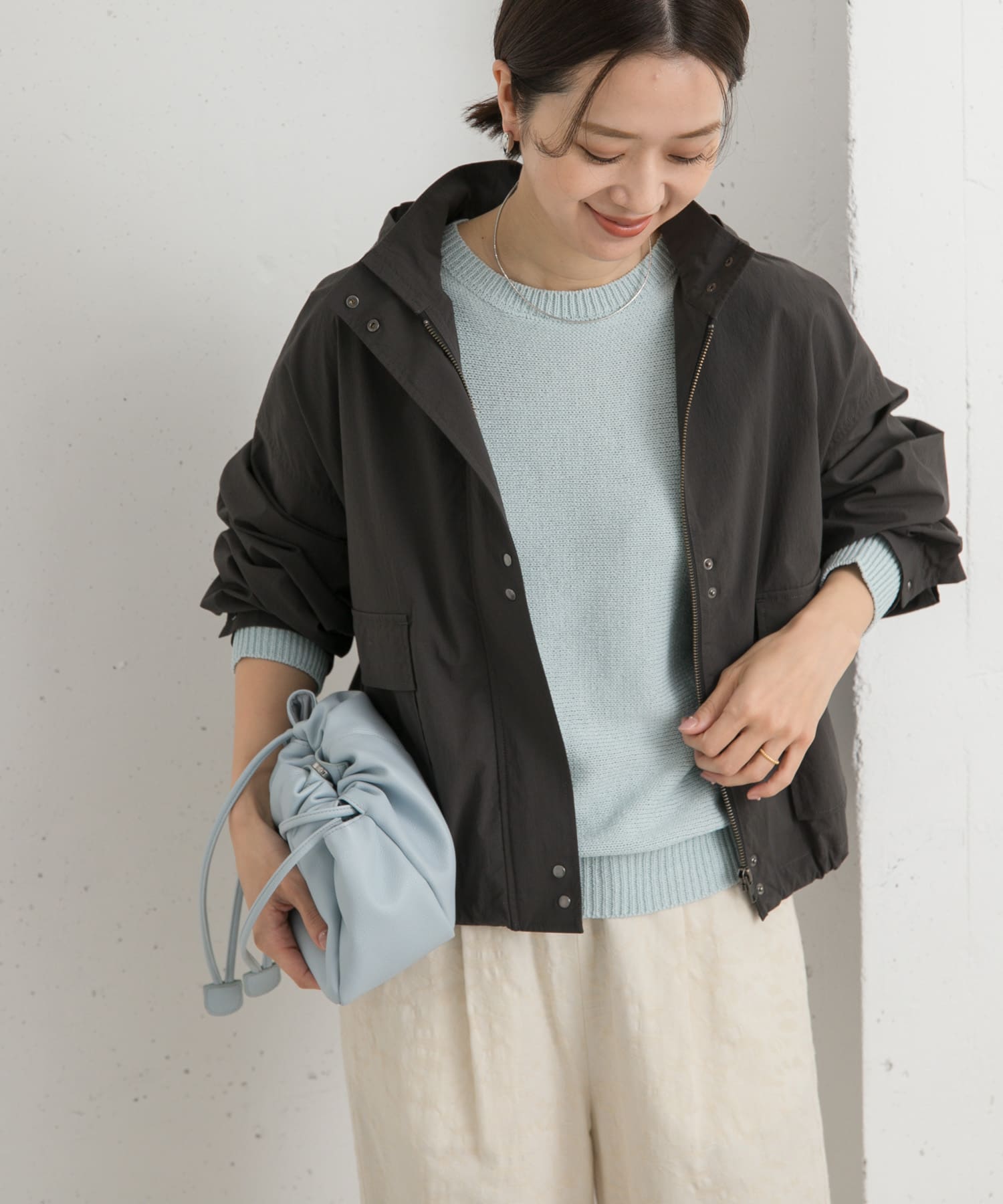 マウンテンパーカーはショート丈なのでスッキリ着られます。
