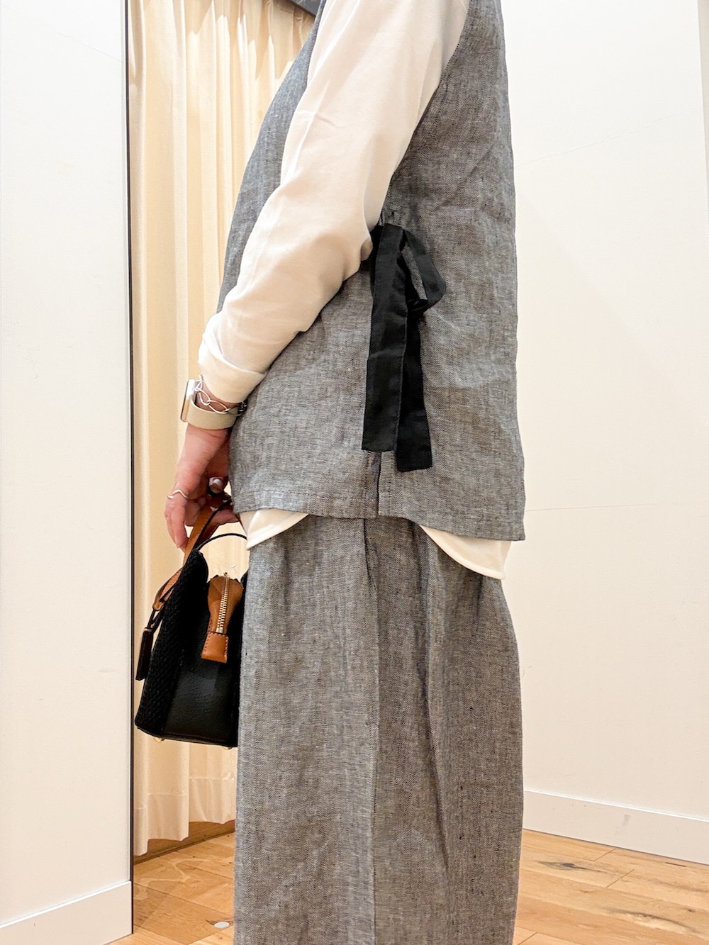 DOORSヘリンボーンリネンサイドリボンベスト- カラー: