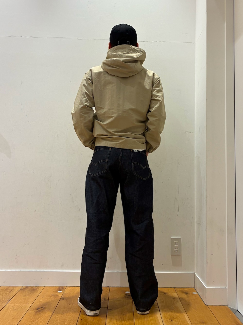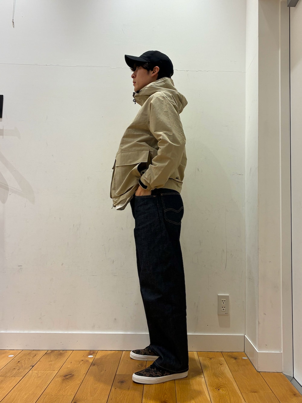 中にはシンプルな白Tを着ていてその上からスノーピークのジャケットを着ています!生地が薄くこれからの時期に着やすくシンプルでとても良いアイテムになっています!パンツはLEEの101のリジットカラーになっています!色んな物に合わせる事が出来るので着回しができるパンツです!
