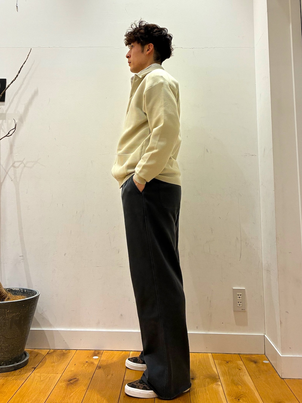 その下に切りっぱなしになっているスウェットパンツを履いています!