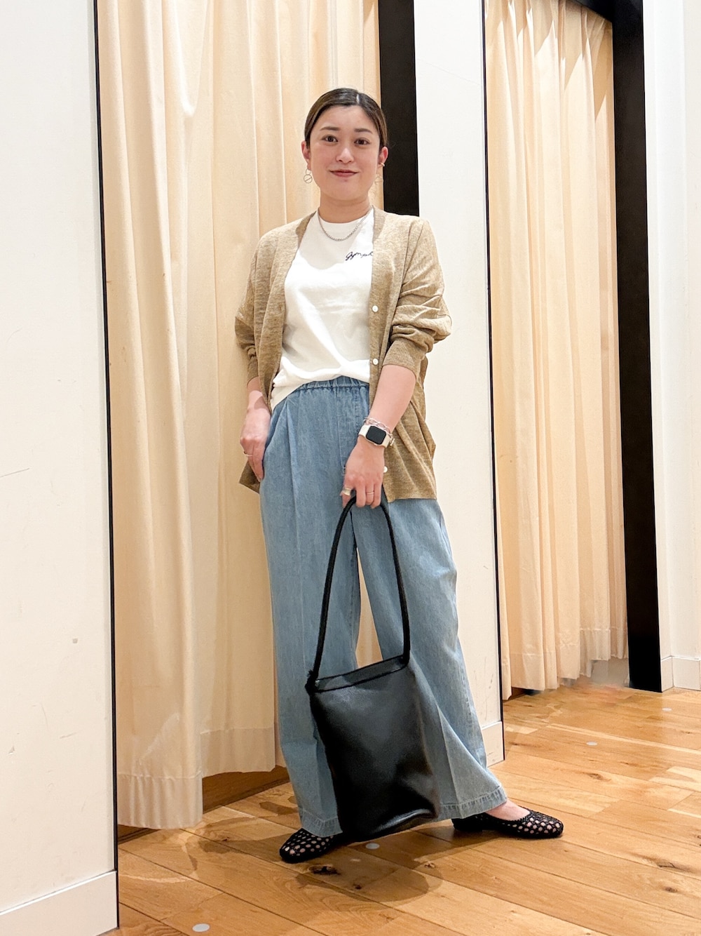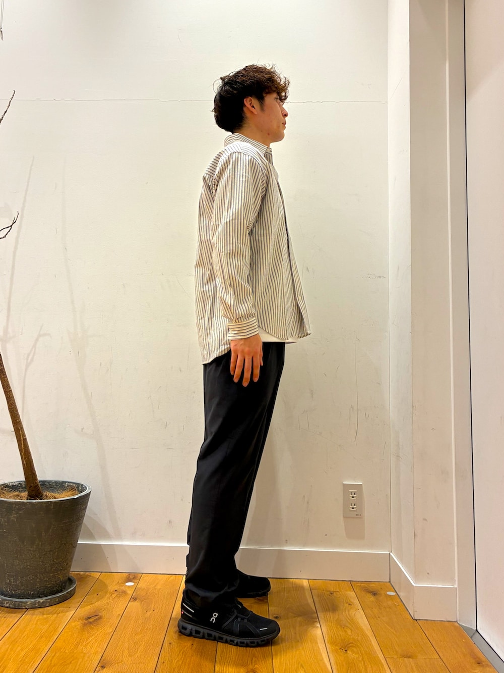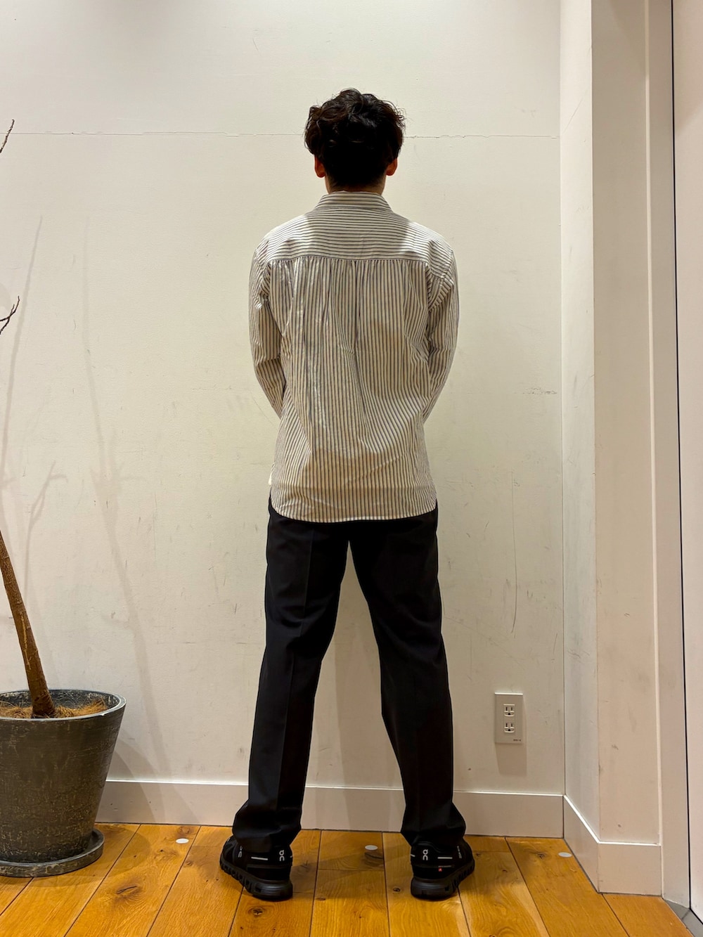 中には半袖Tシャツを着てその上にストライプシャツを着ています!!生地がサラサラとしていてこれからの季節にとても良いです!!