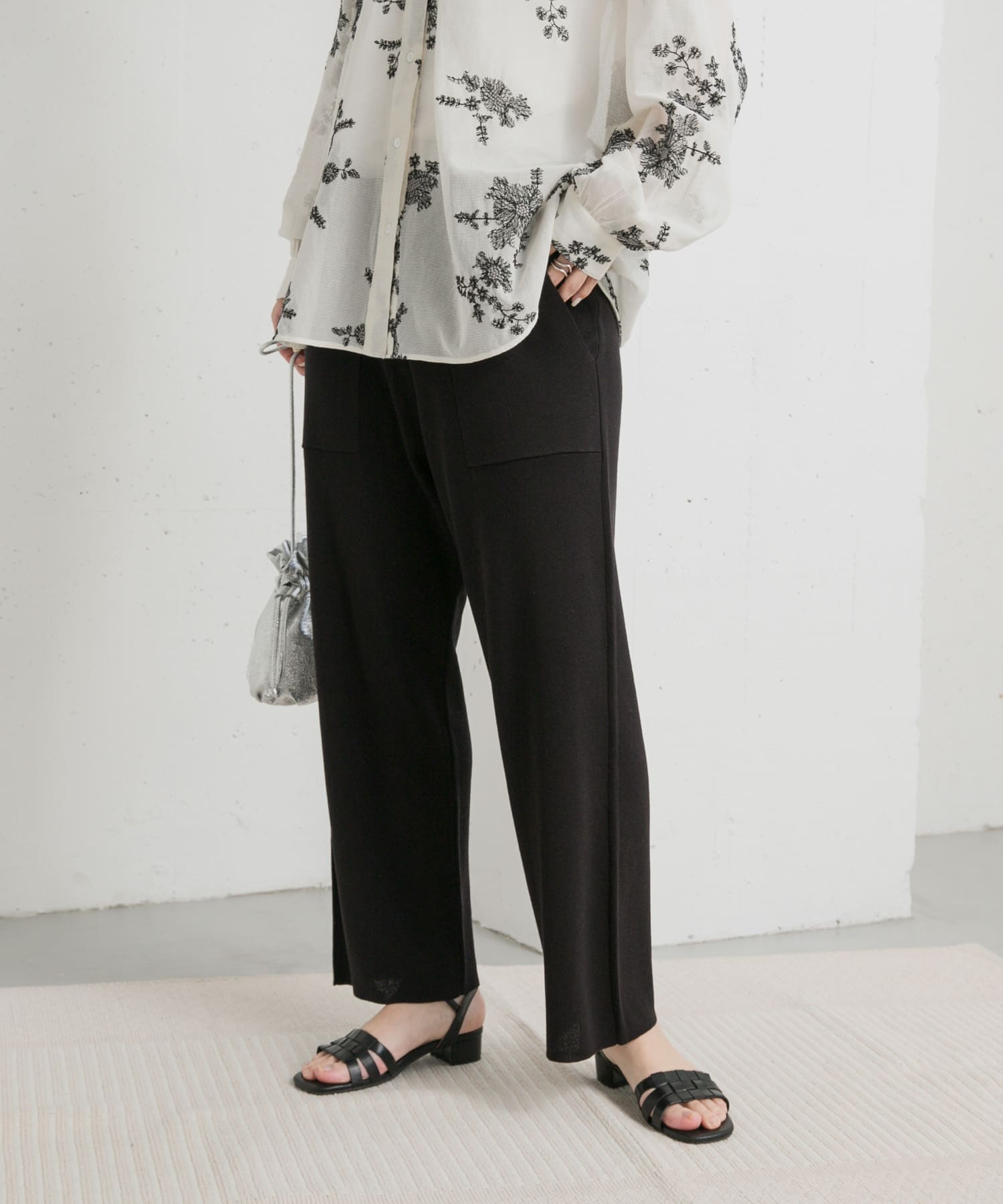 リネンのニットパンツは着丈が少し短い作りで、私の身長だとアンクル丈くらいでした。