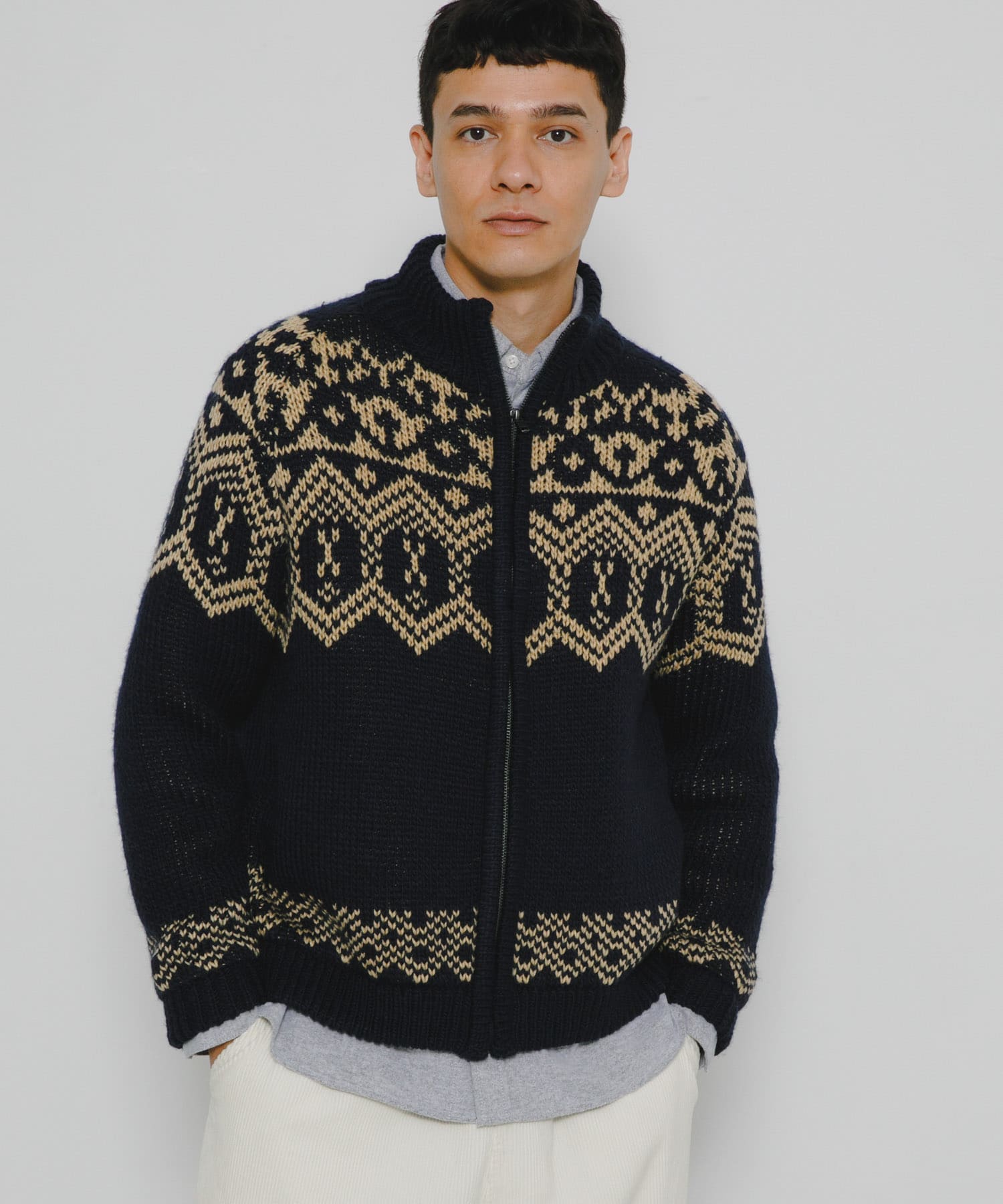 ジャガードジップアップニット
