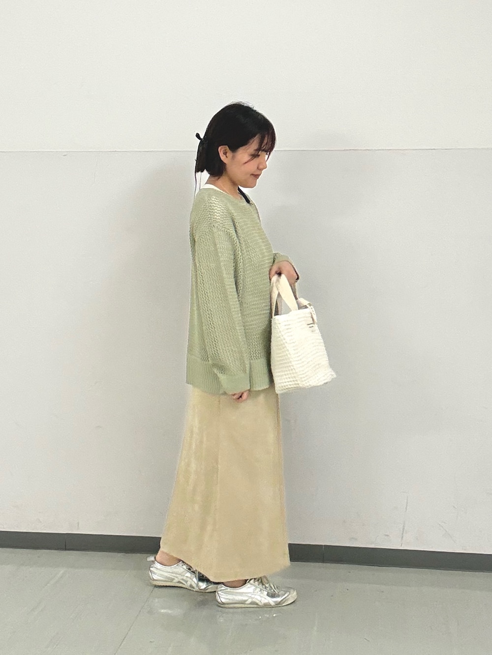 こちらのスウェードスカートはカジュアルスタイルでも合わせていただけます!