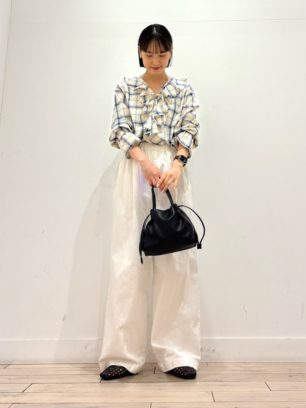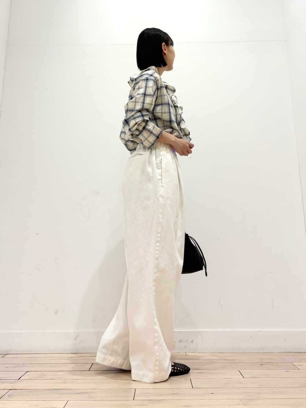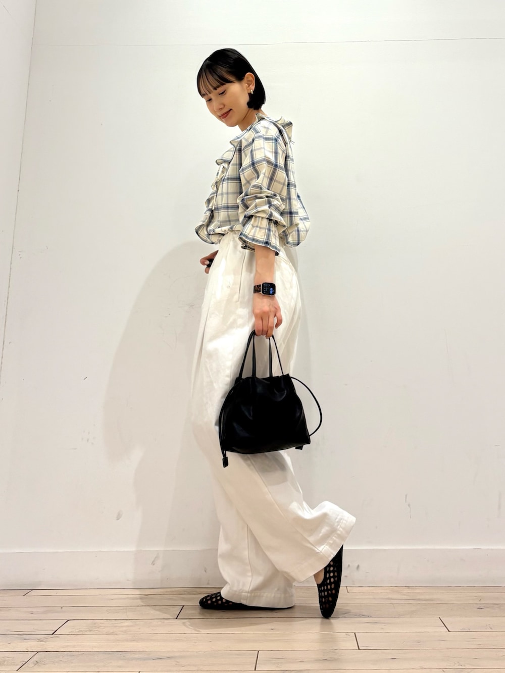 ナチュラルなチェック柄が可愛いこちらのブラウスは、甘くなりすぎないようにホワイトデニムと合わせてカジュアルな雰囲気に👏