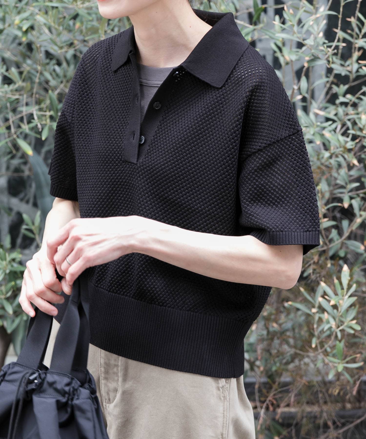FORK&SPOON メッシュパターンニットポロシャツ