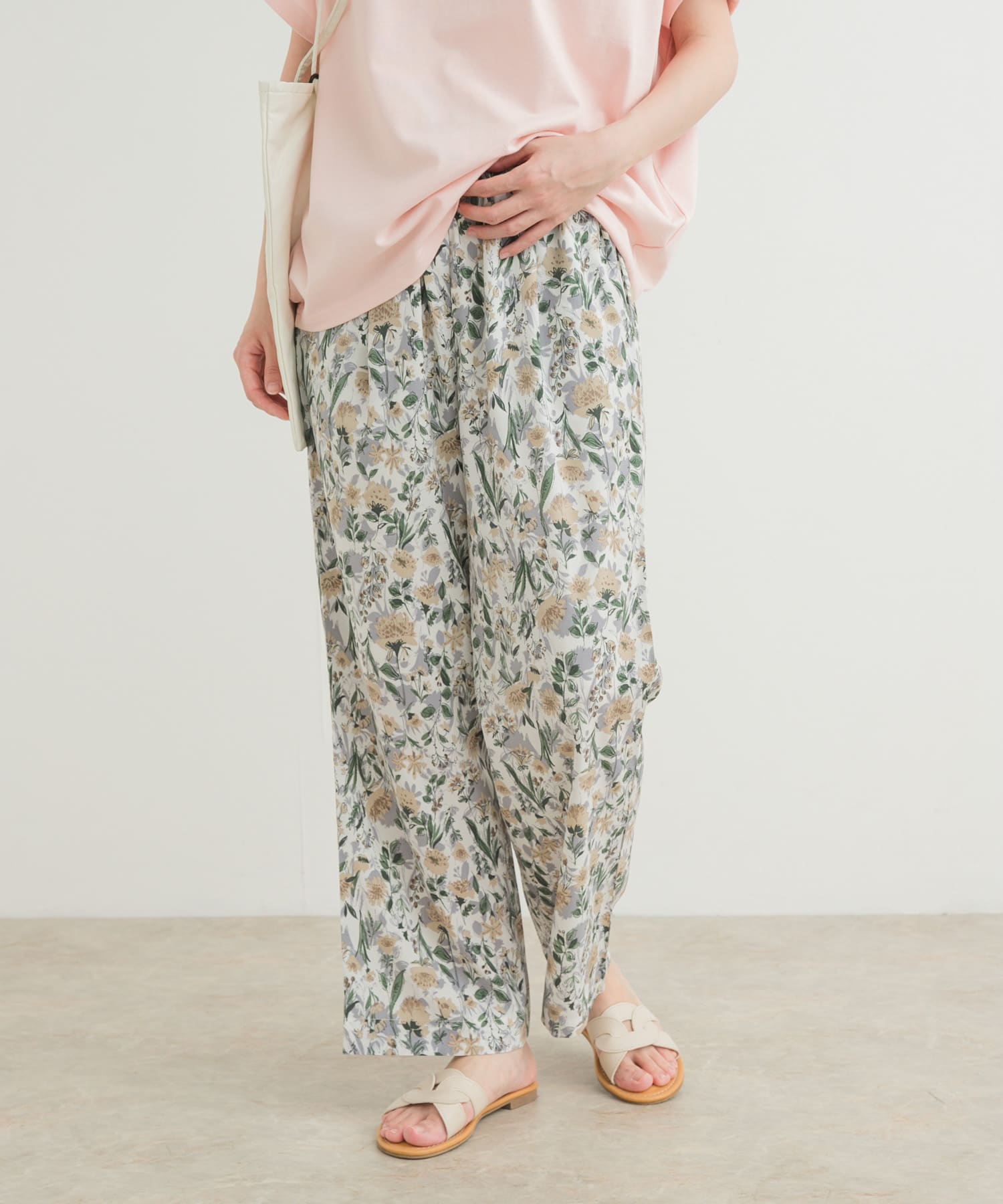 『イージーケア/接触冷感』フラワープリントイージーパンツ