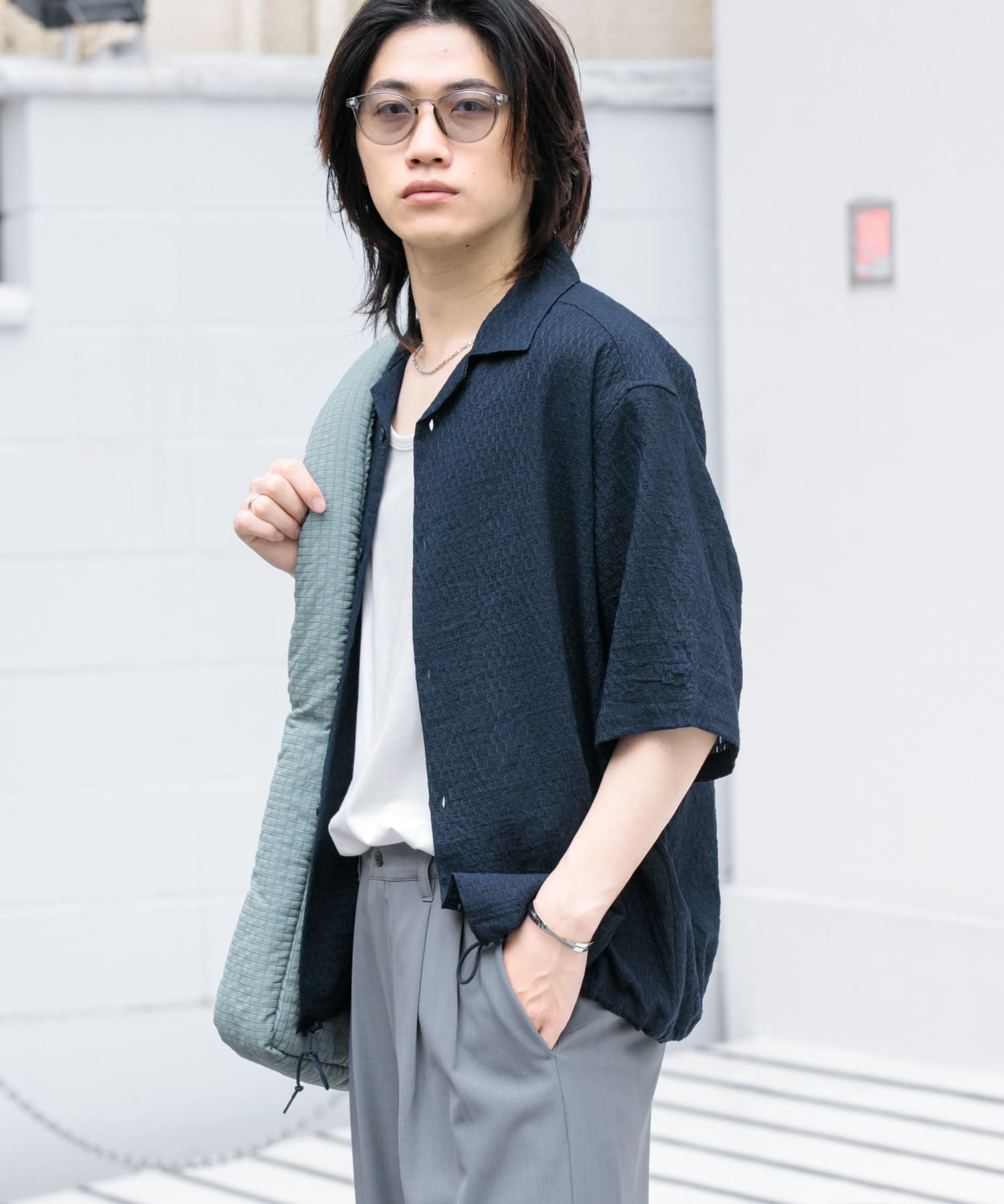シアーレースドローコードオープンカラーシャツ