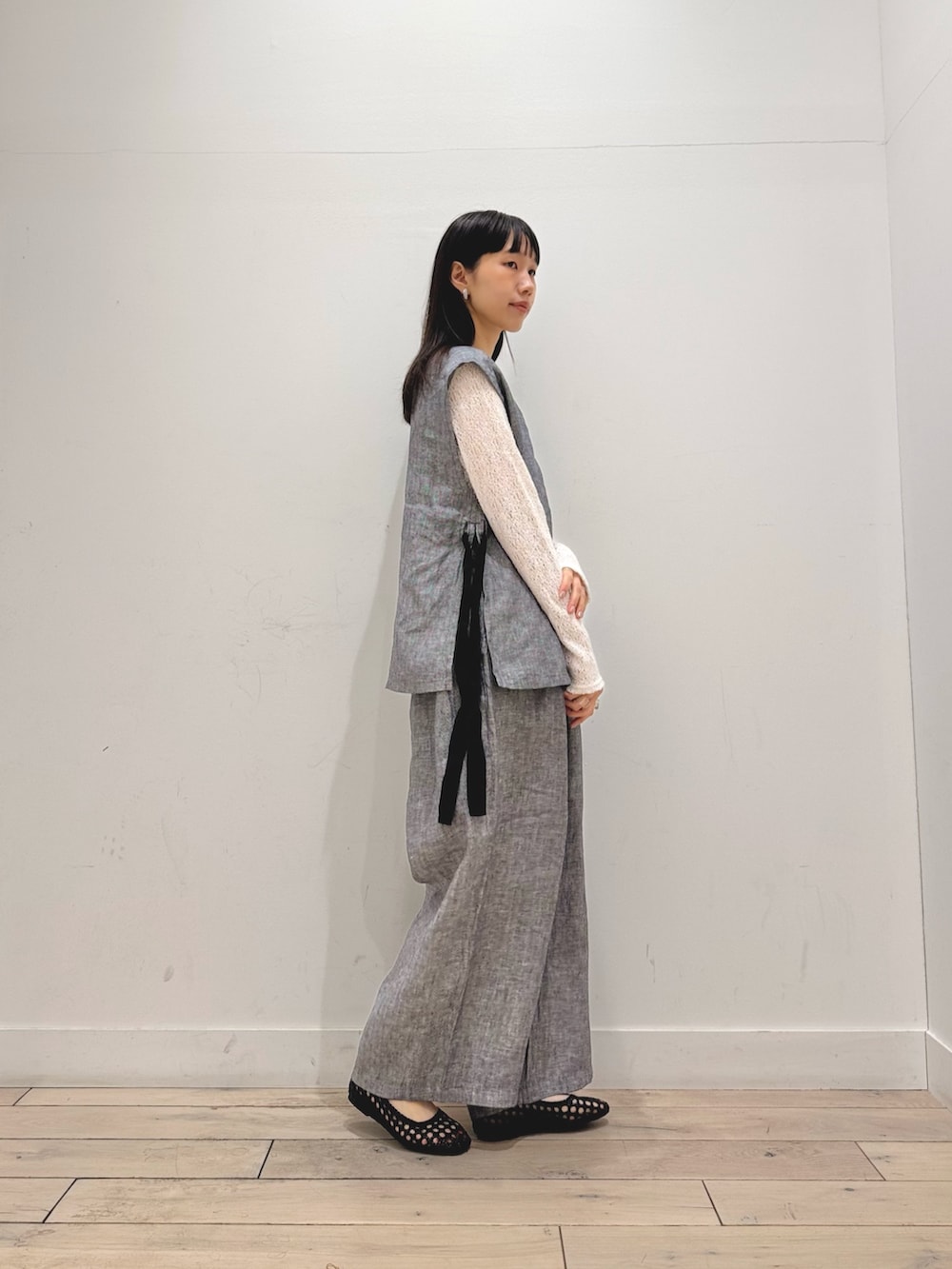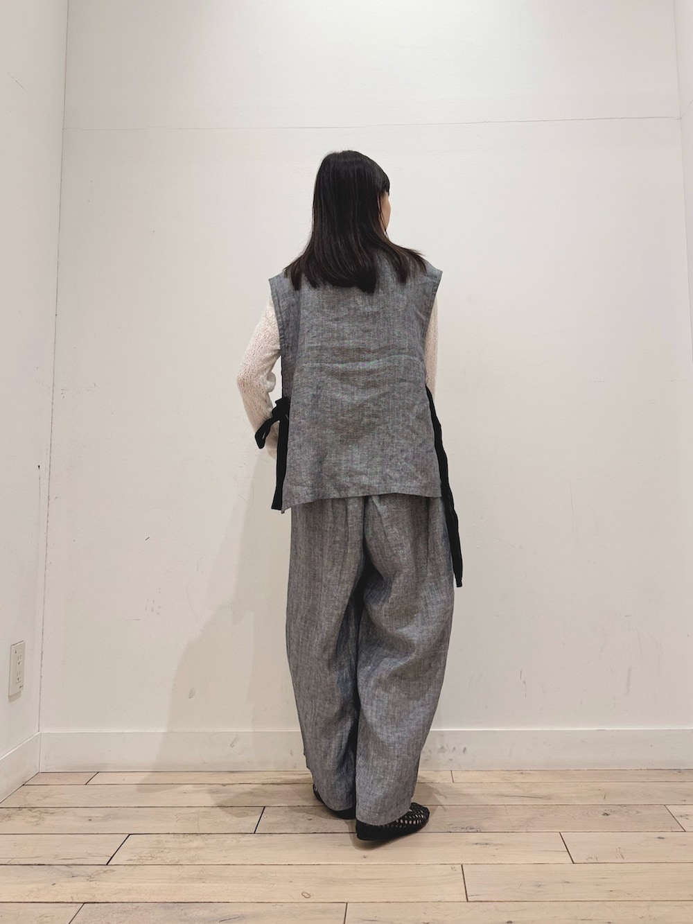 ヘリンボーンリネンサイドリボンベスト