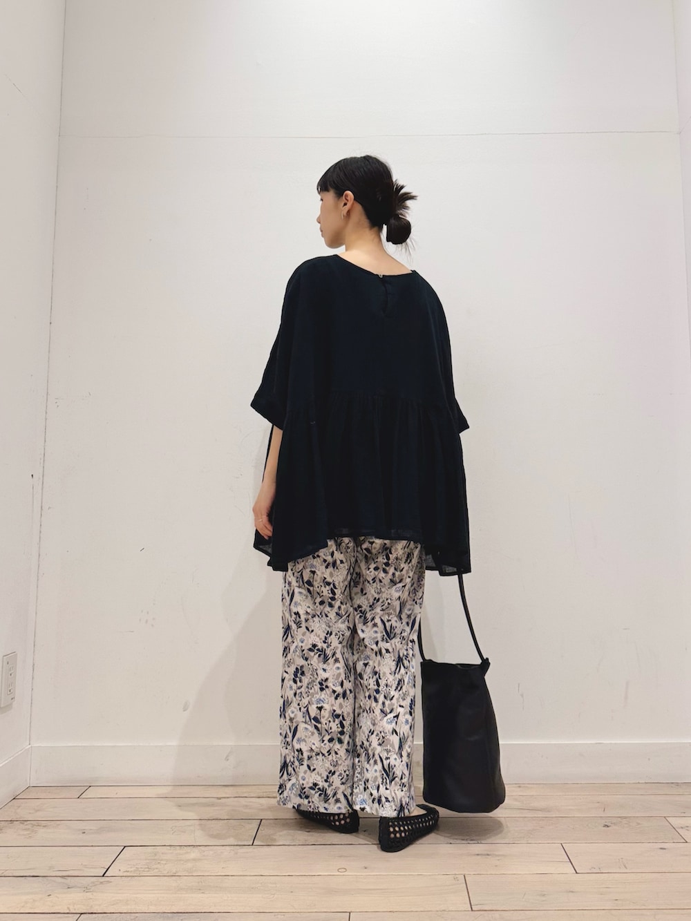 程よくギャザーの入ったゆったりブラウスに、ストレートのきれいめパンツを合わせました💐