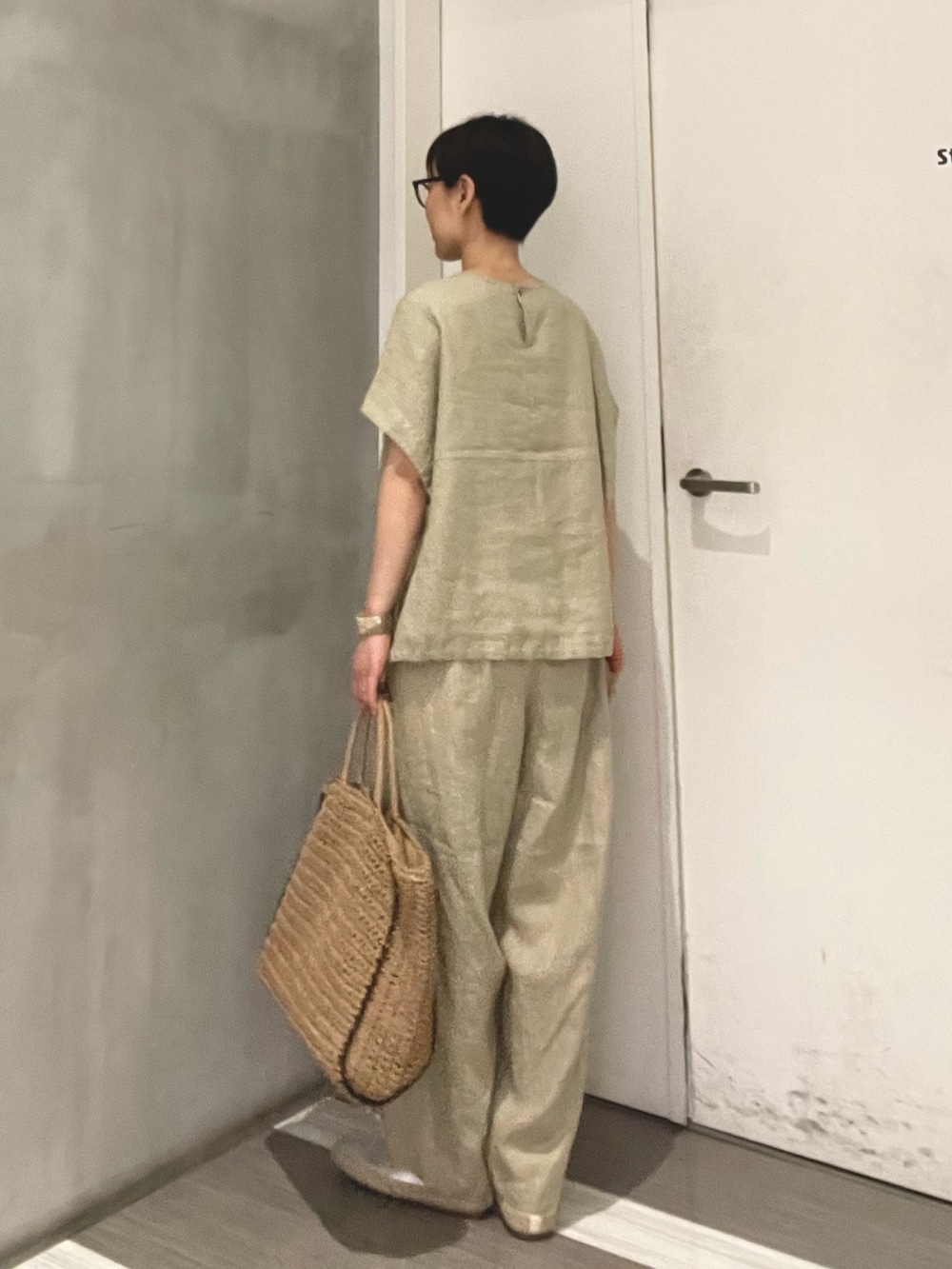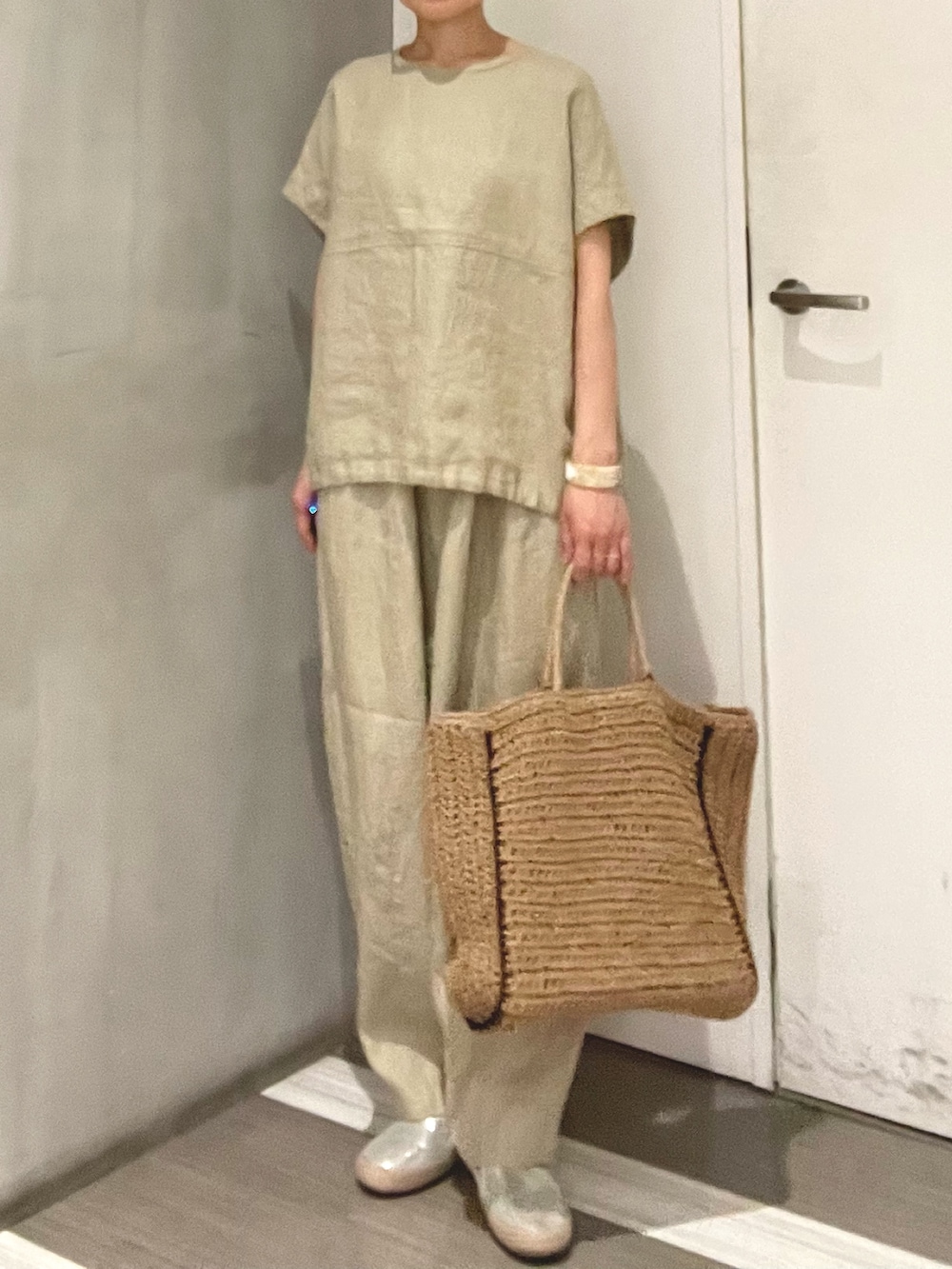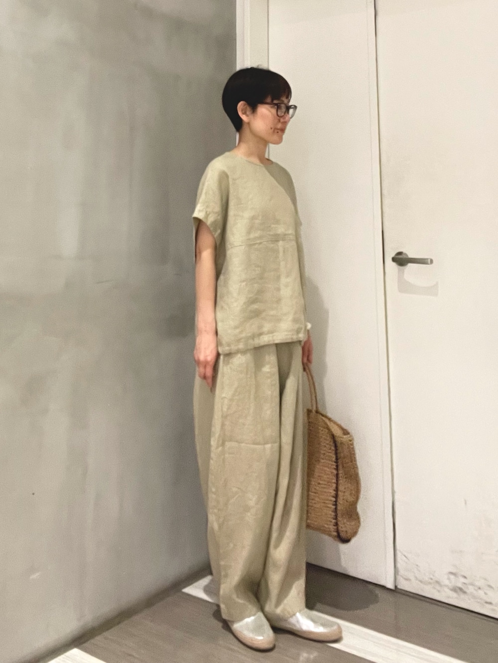 リネン素材で軽く、暑い時期にも快適な組み合わせです。