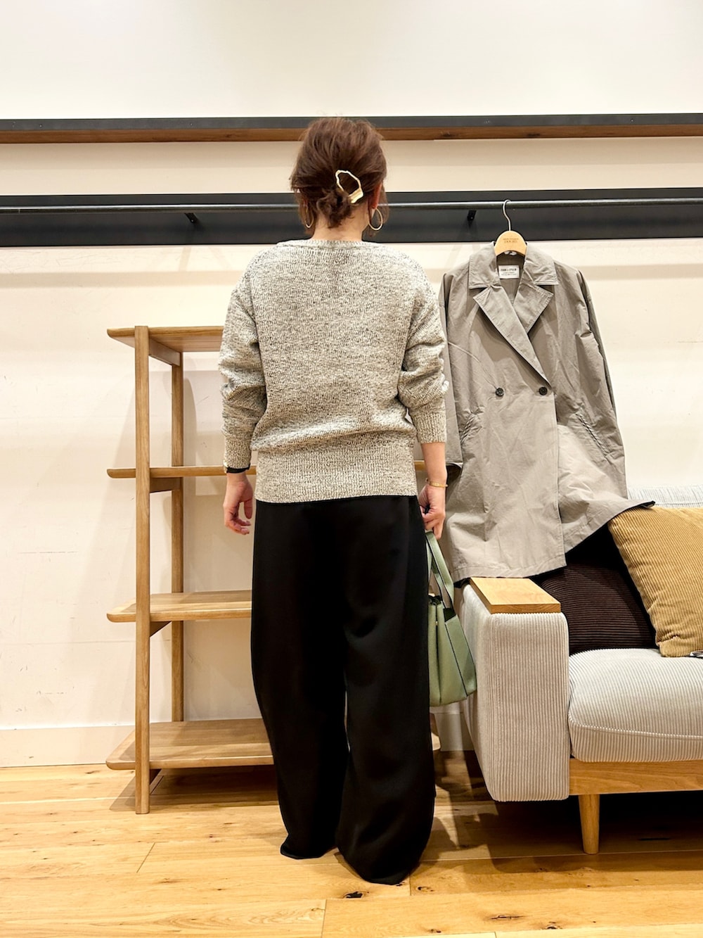 落ち感のある素材なので、ワイドでも広がりすぎず、すとんと縦ラインが出るのが嬉しいポイント。