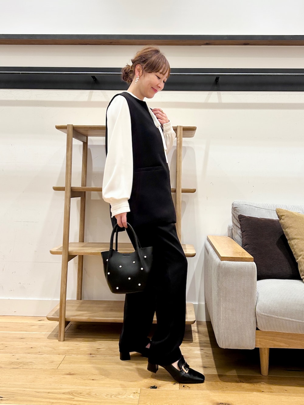パールがポイントになるので、シンプルなコーデの日に合わせるだけで雰囲気が出ます。