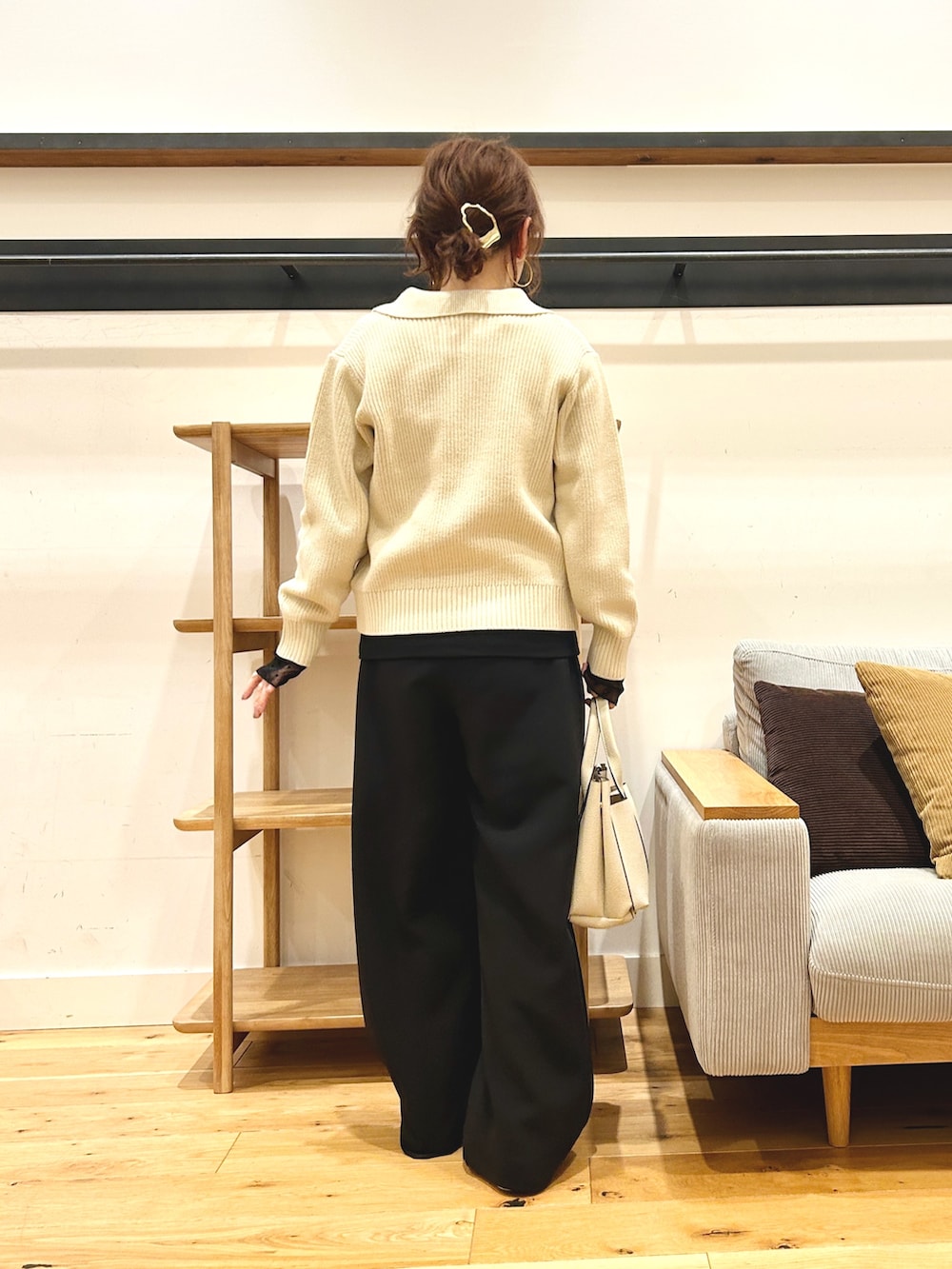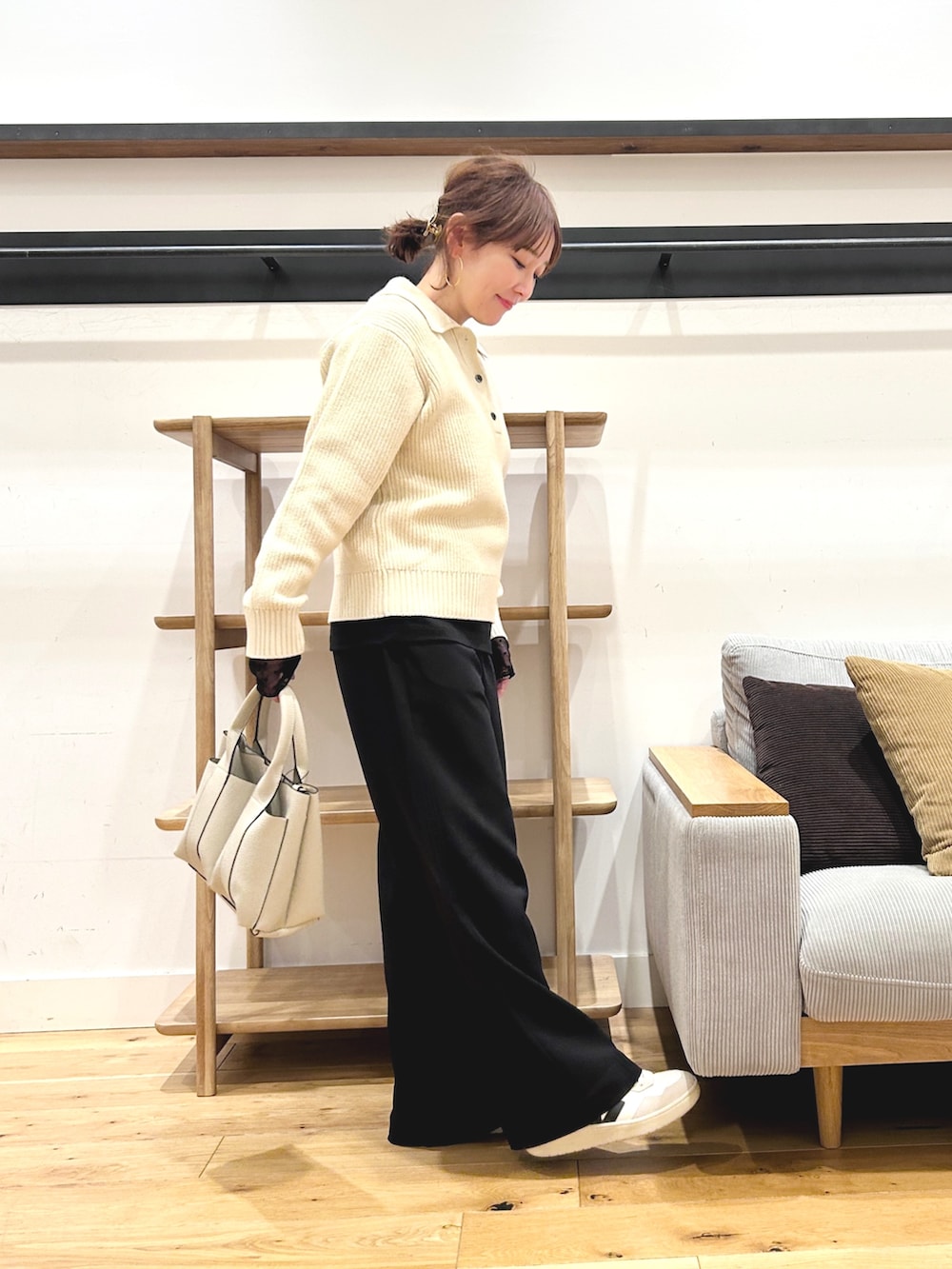 襟付きデザインですが、きちんとしすぎず、ラフに着ても様になるバランスがちょうどいいニット。