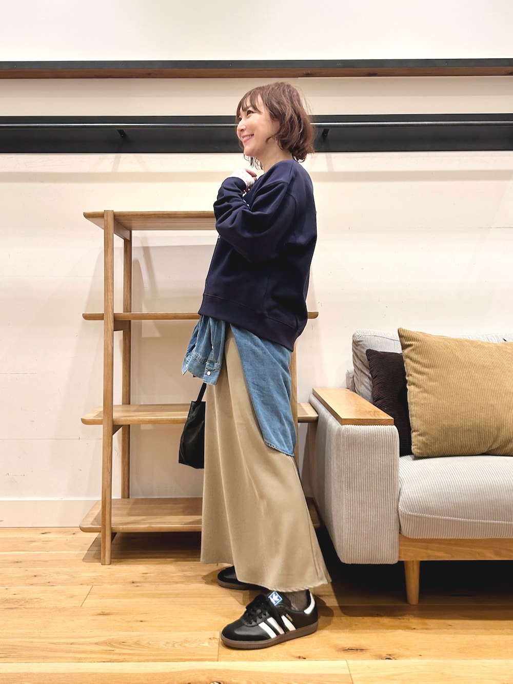 スッキリした腰回りなので色んなトップスに合わせやすく、きれいめにもカジュアルにも振れるので、スニーカーの日もパンプスの日も自然に馴染んでくれます♪