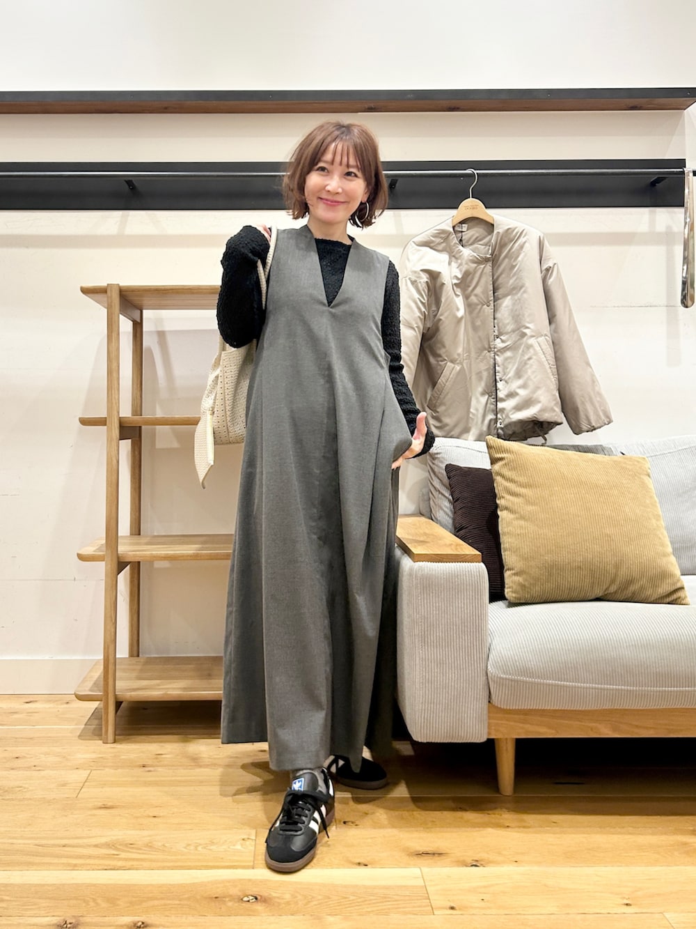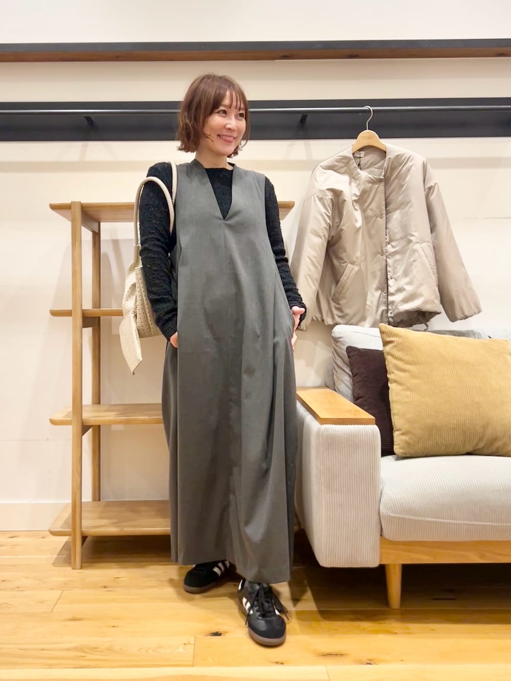 ジャンパースカートですが、カジュアルにはもちろん、落ち着いた雰囲気で少しきれいめにも着られます。