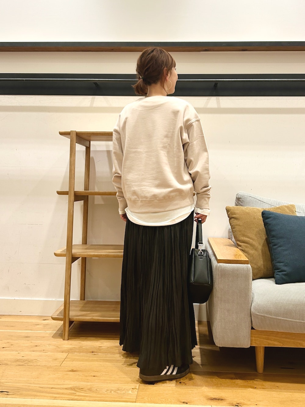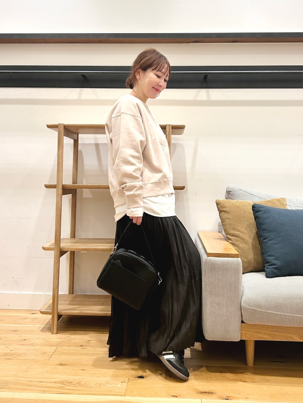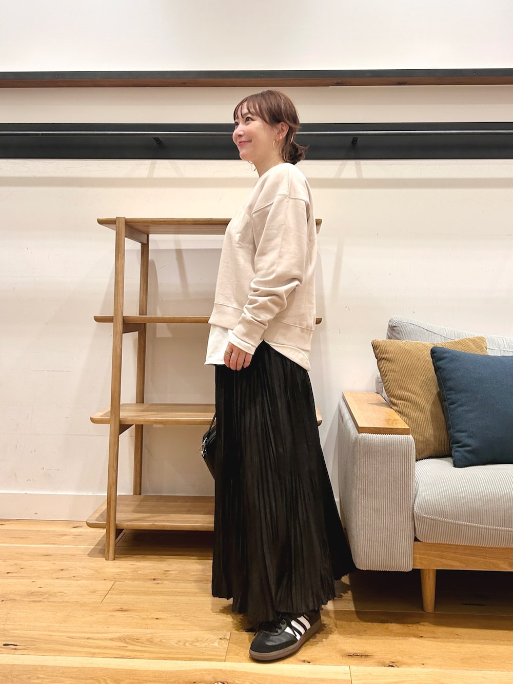 スニーカー合わせで抜け感を出すのがおすすめです。