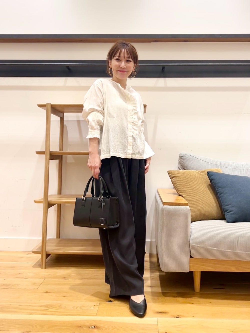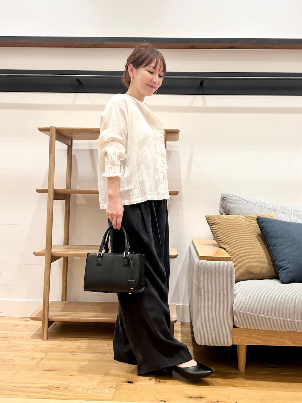 そしてフリル付きブラウスなのになぜか甘さ控えめに着れてしまう…