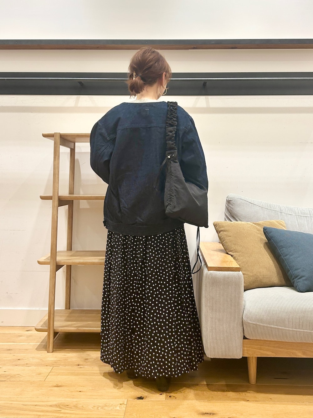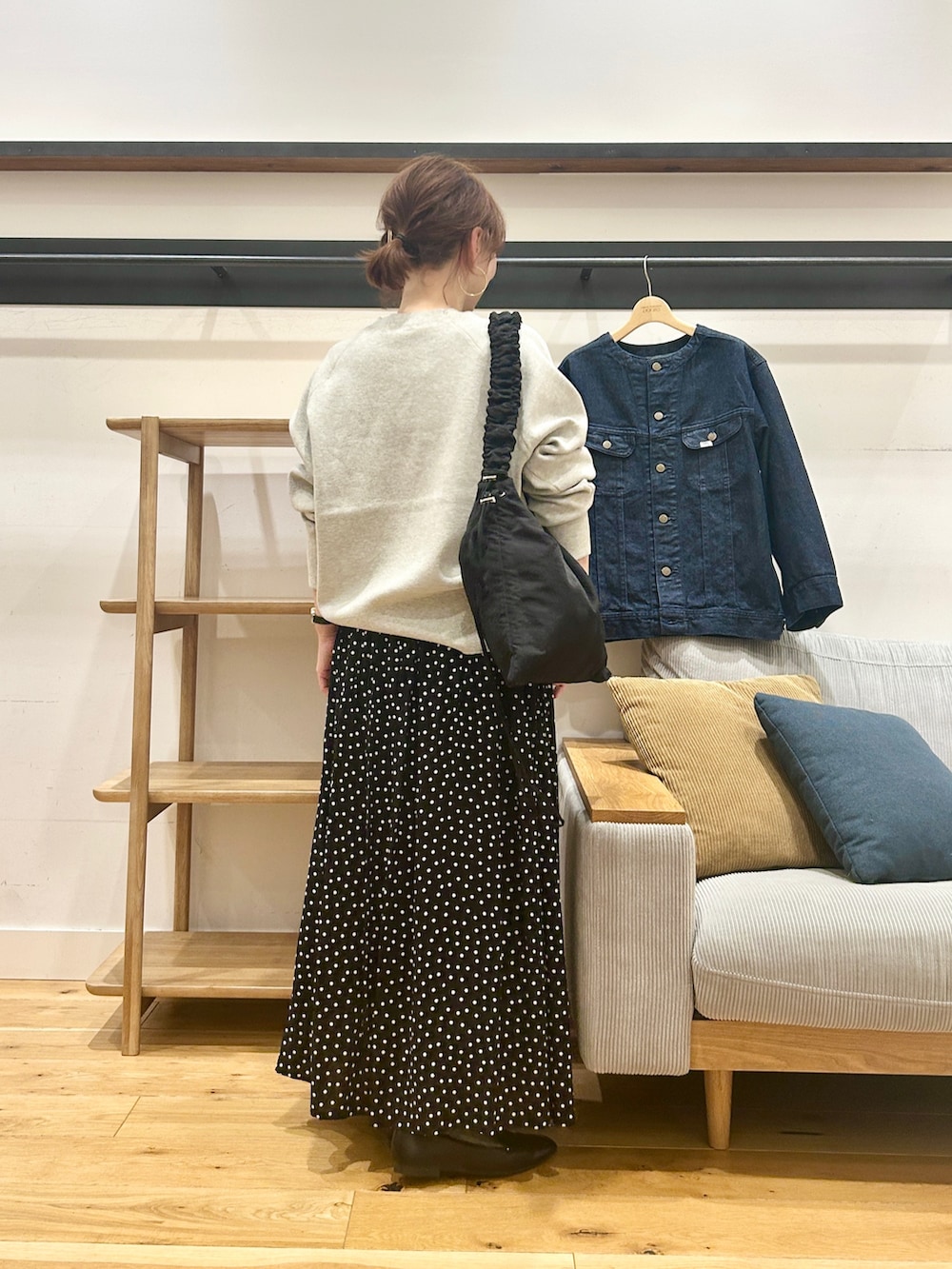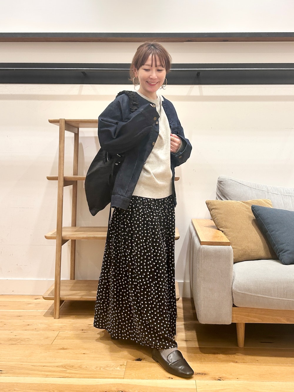 程よくゆとりのあるサイズ感なのでサッと羽織りやすく、きれいめスカートやワンピースと合わせると、大人っぽいカジュアルにまとまります。