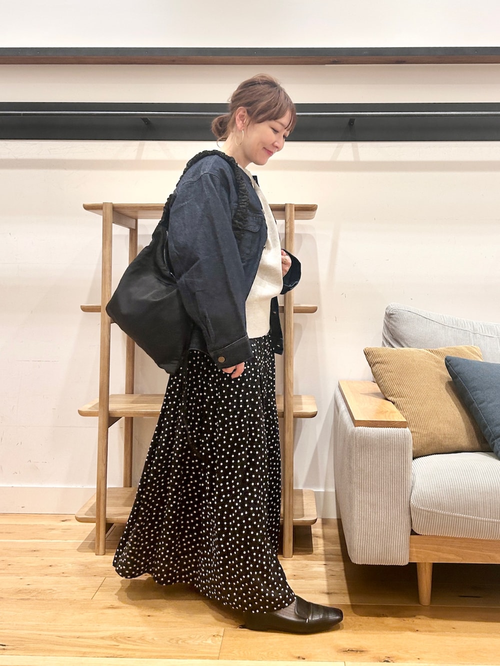細かいドットが上品で、大人っぽく履けるスカート。