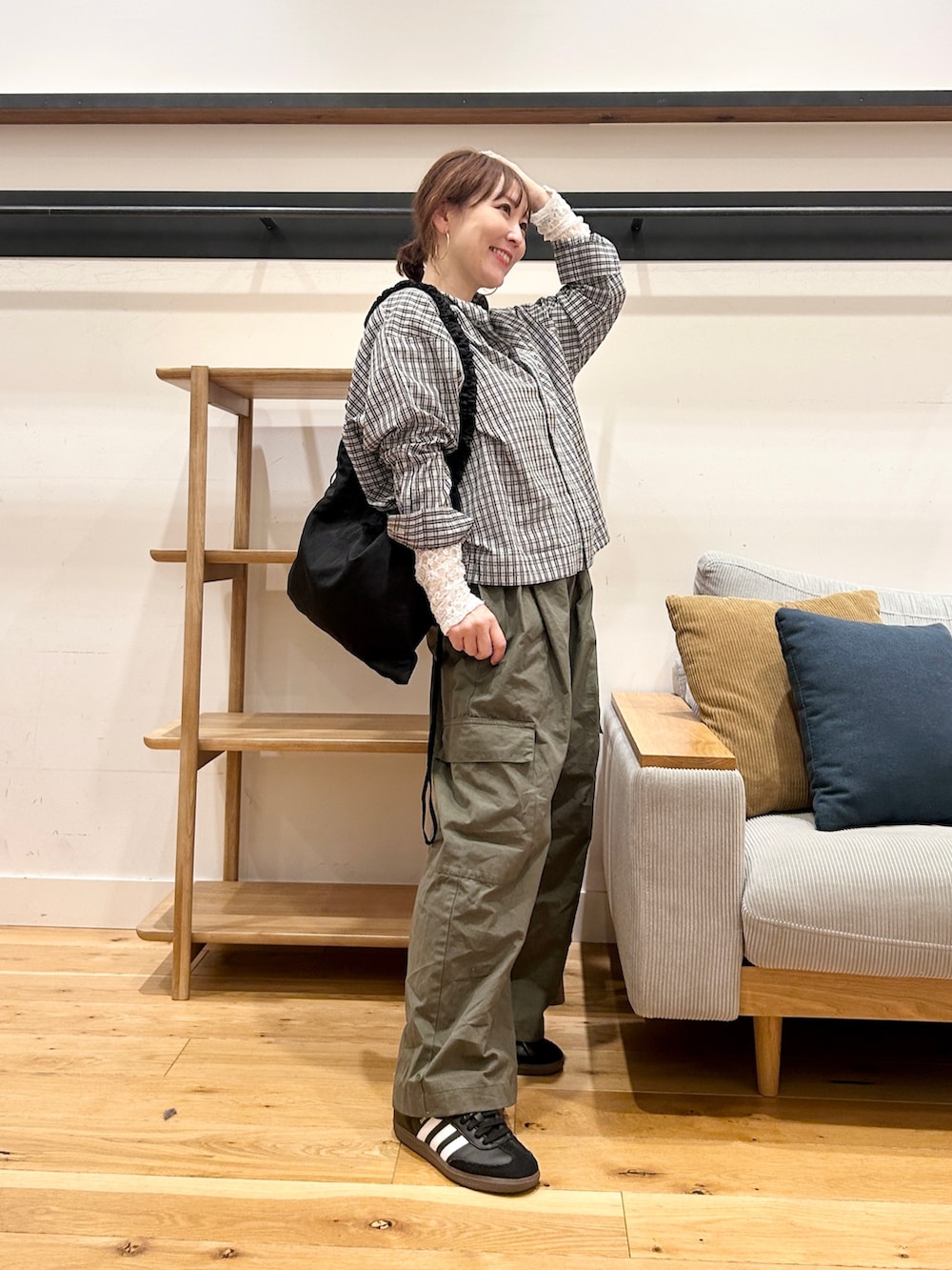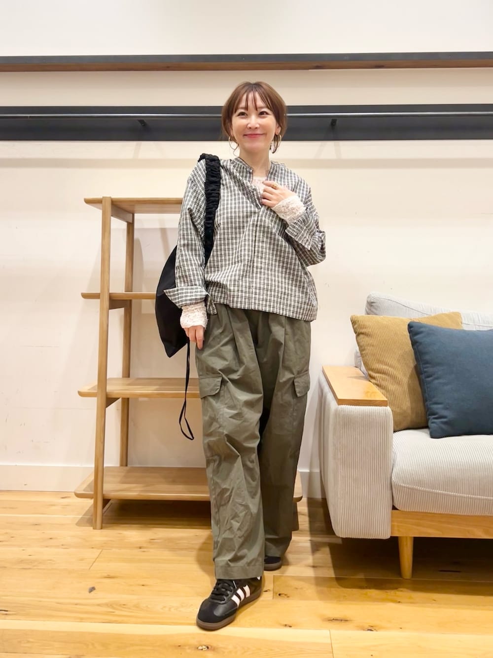 ブラウスとか甘めアイテムと合わせるもまた良しです♪