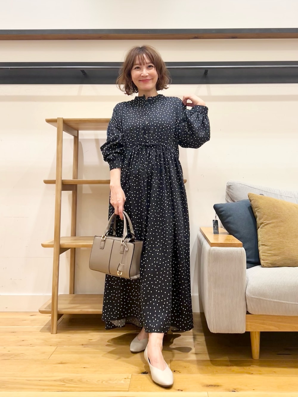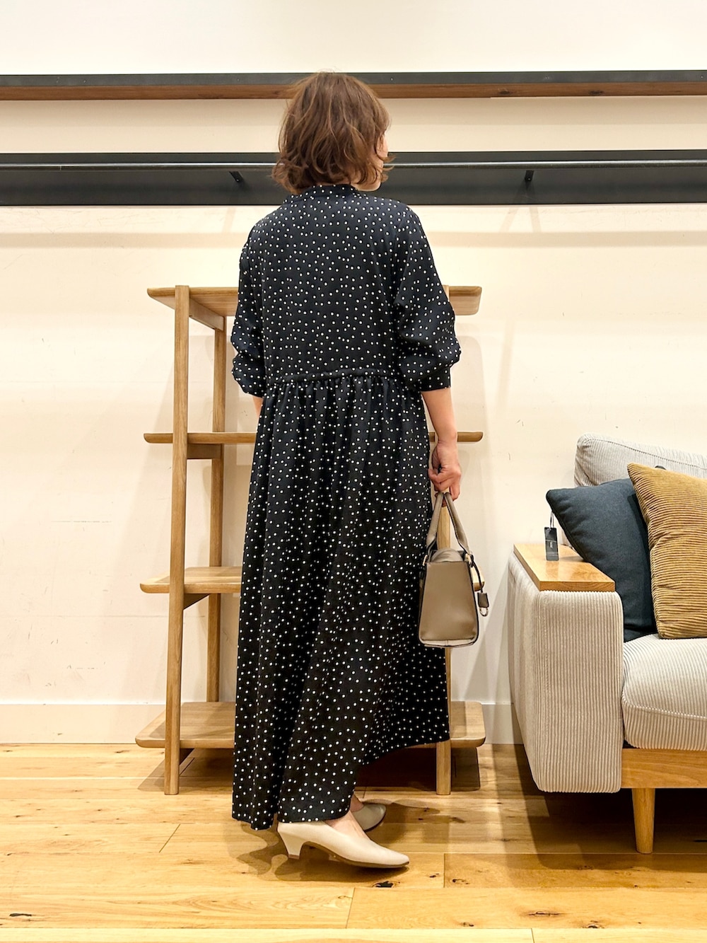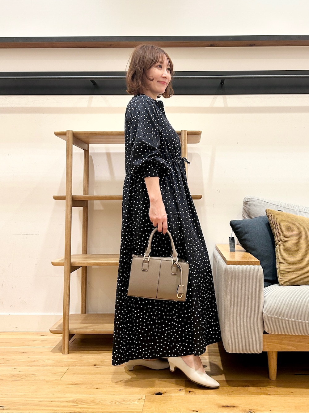 小ぶりなドットが上品に映える、大人のためのワンピース。