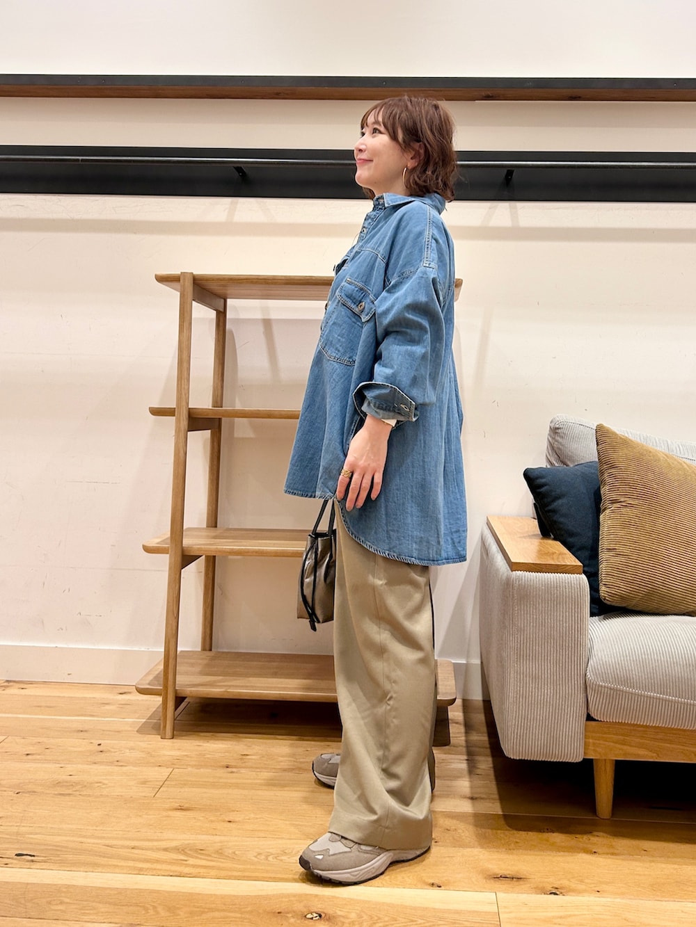 割とゆとりのあるシルエットなので、スウェットやカットソーの上からも重ねやすく、ロングシーズン活躍。