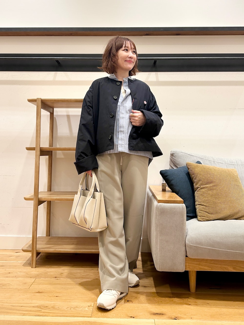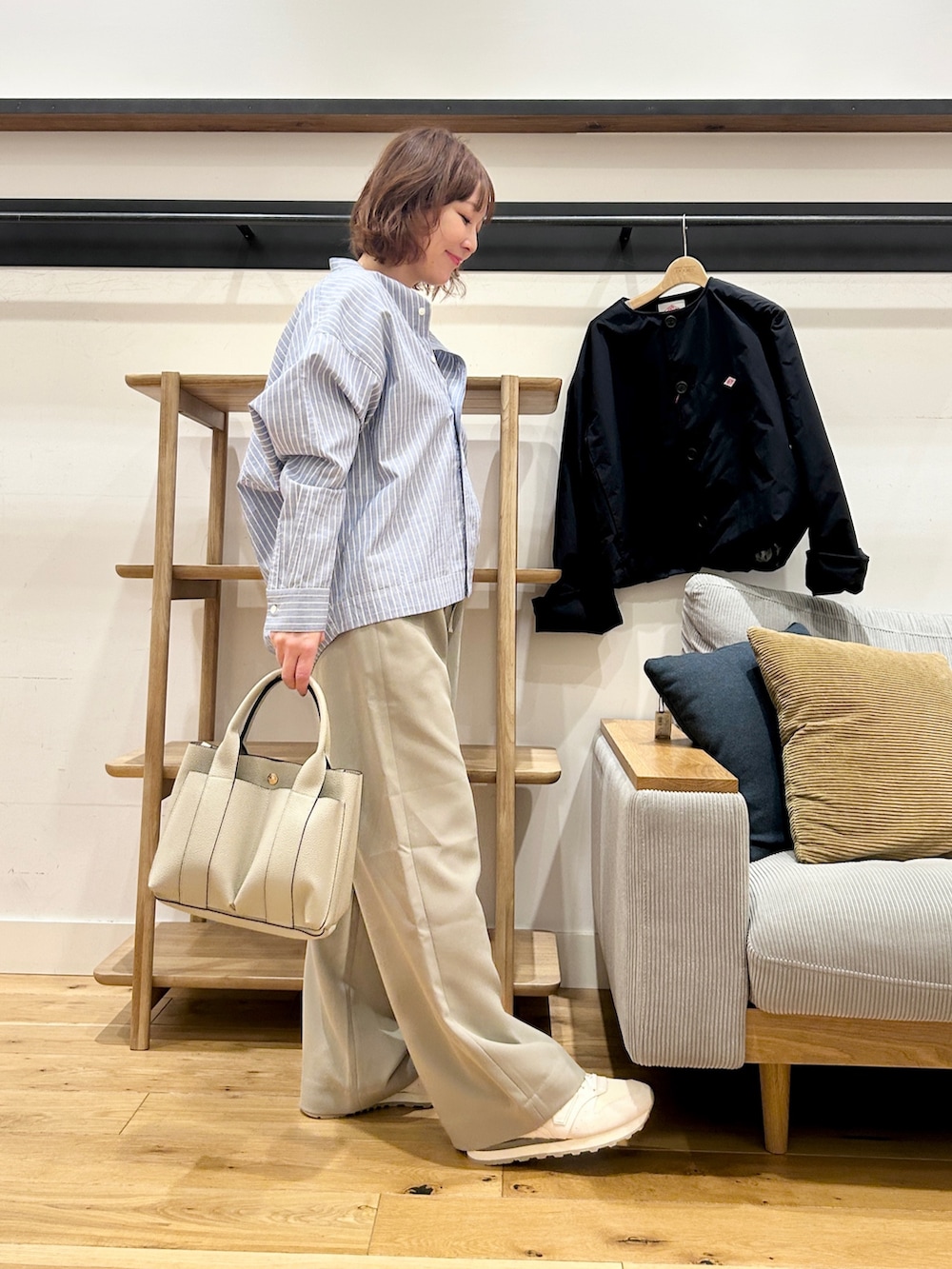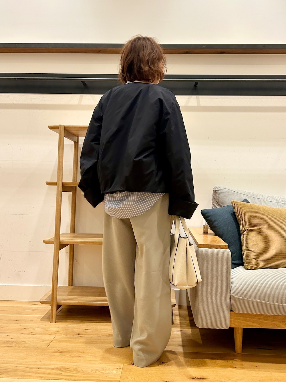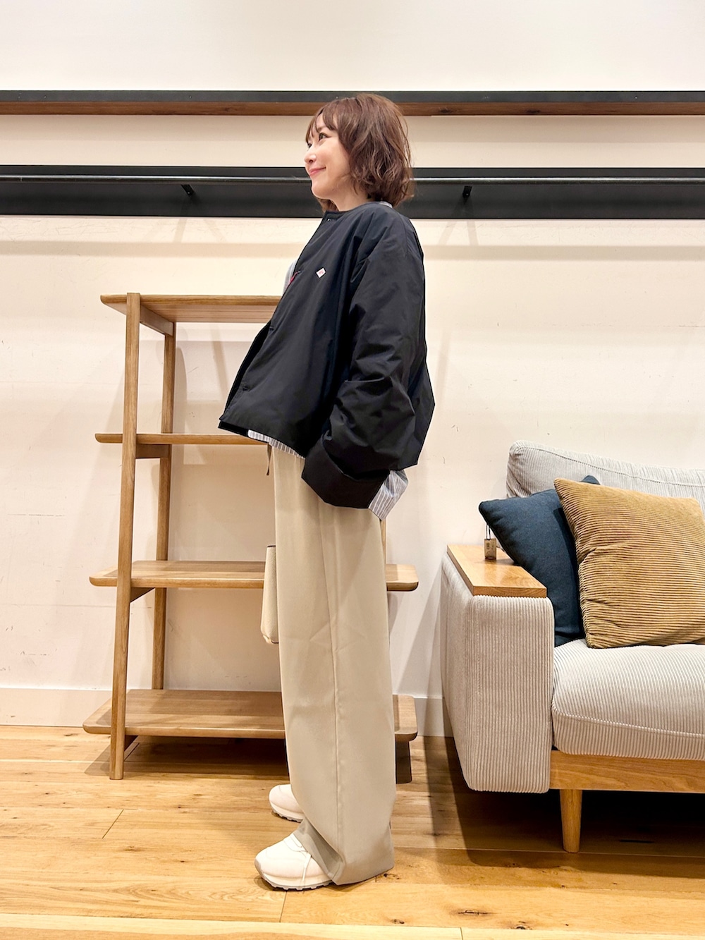 ワイドパンツやスカートとも相性がよく、重たく見えないのが嬉しいポイントです。