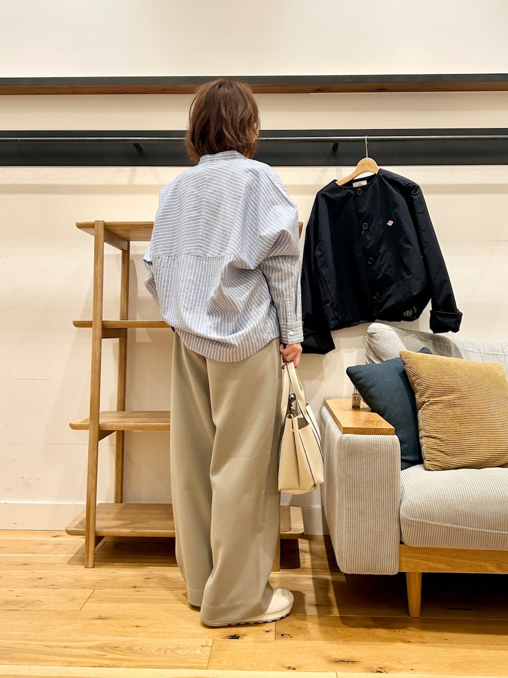 身幅にゆとりがあるので、中にスウェットやニットも重ねやすく、長いシーズン活躍します。