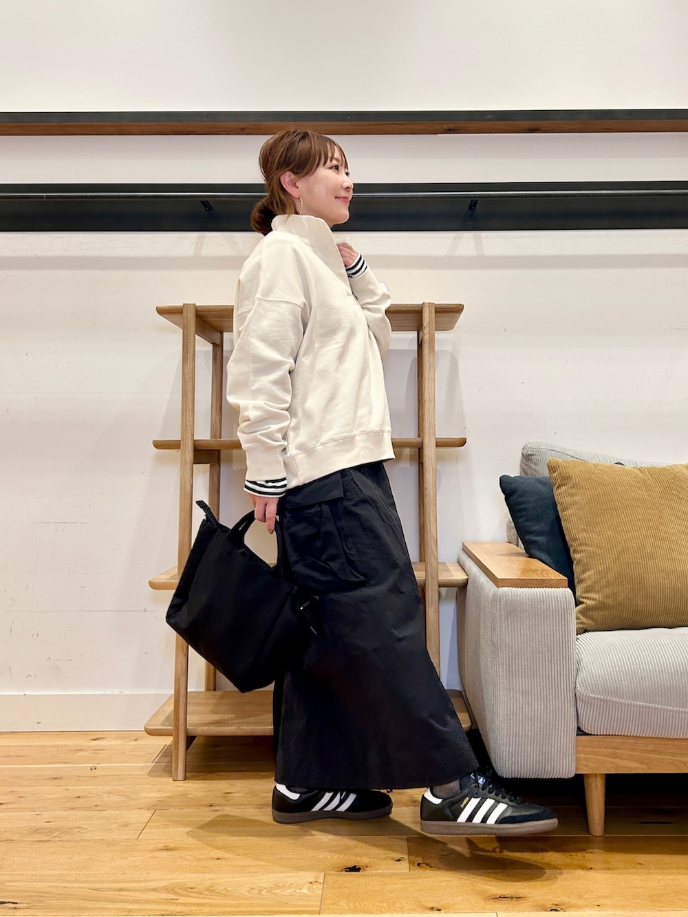 後ろスリット入りで足さばきもよく、スニーカー合わせもバランス取りやすいです。