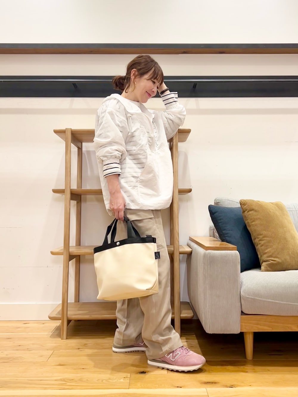 シンプルだけど、ちゃんと今っぽいゆるっとしたシルエットが、抜け感のある大人カジュアルをつくってくれます。