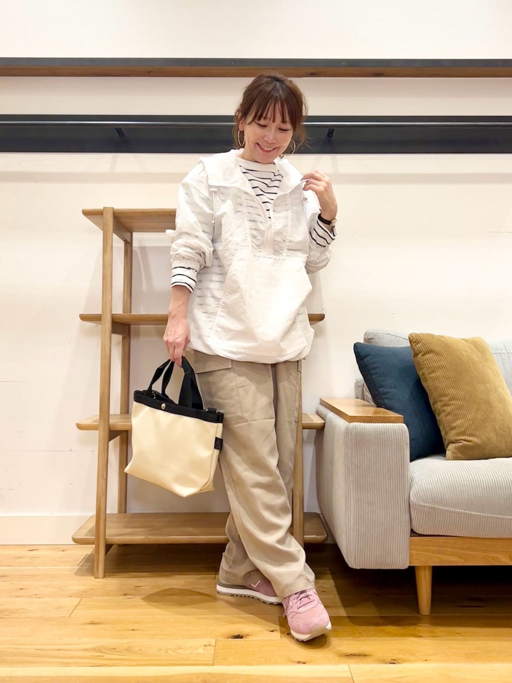 カーゴパンツなのにテロンと綺麗な落ち感で、ちょっと女性らしく履けます。