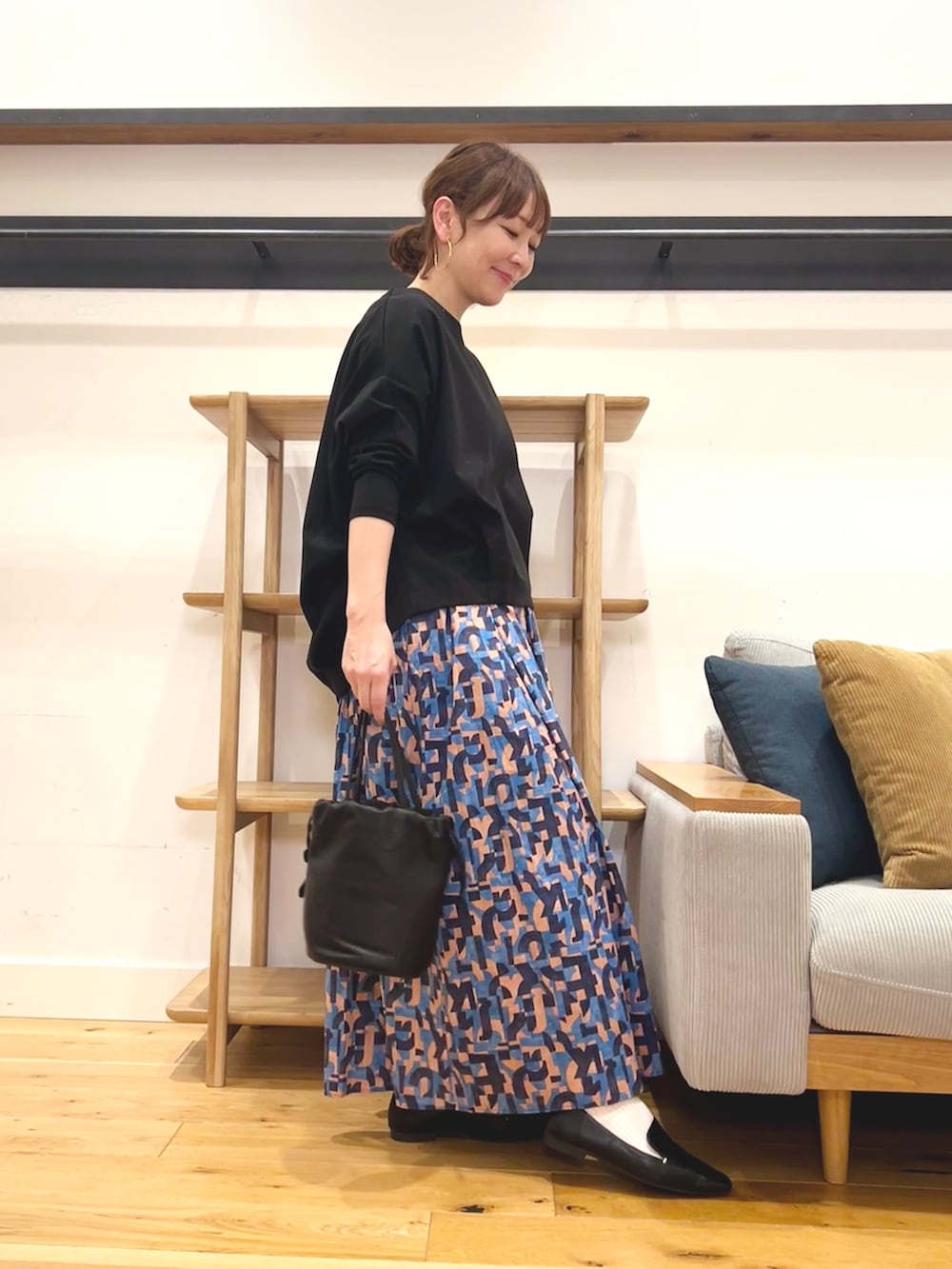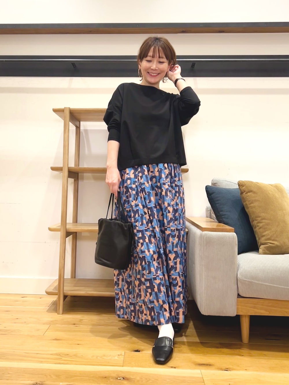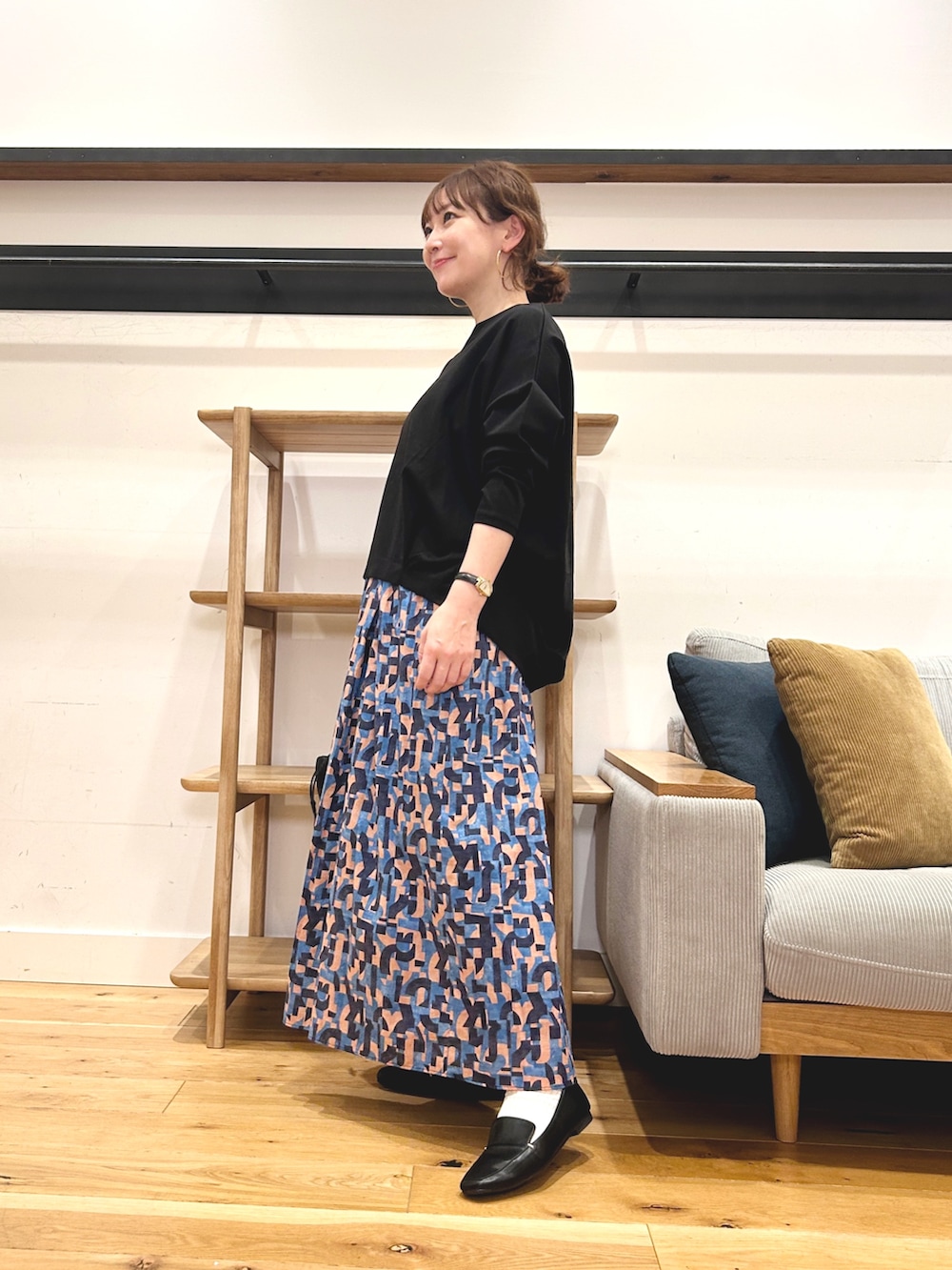 柄物って何合わせたらいいのかわからへんねんという方はトップスを無地のモノトーンやベーシックカラー、デニムにすると大体何でも合うのでレッツチャレンジ。