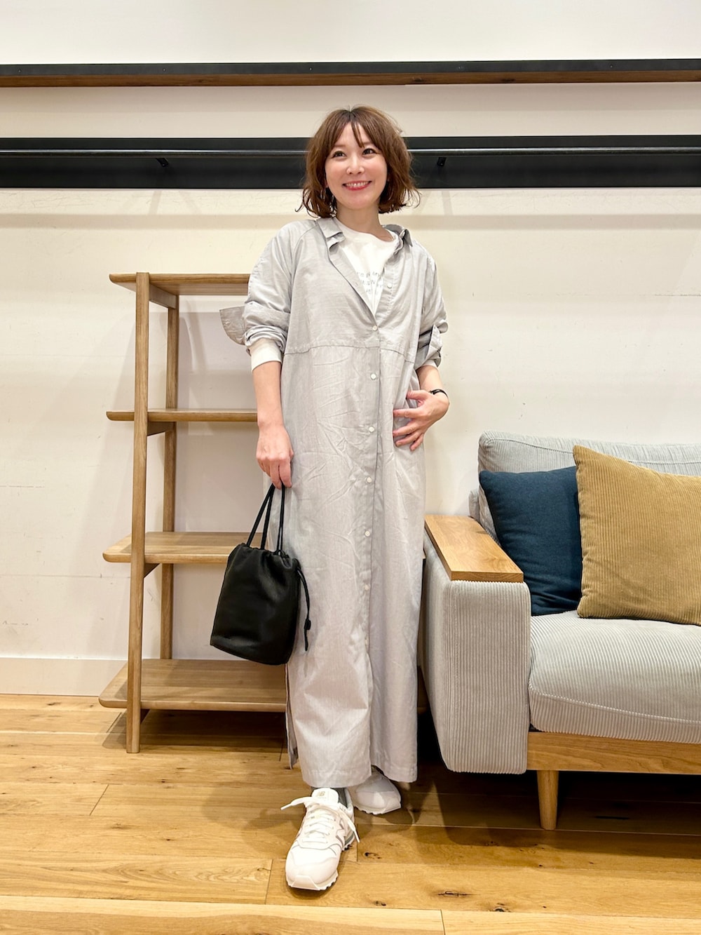 私は1のサイズで着てますがそのままダボって着るよりちょっと開けたり袖をロールアップしたり…なんか抜ける感じの箇所を作りながら着た方がバランスがとれる感じでした!